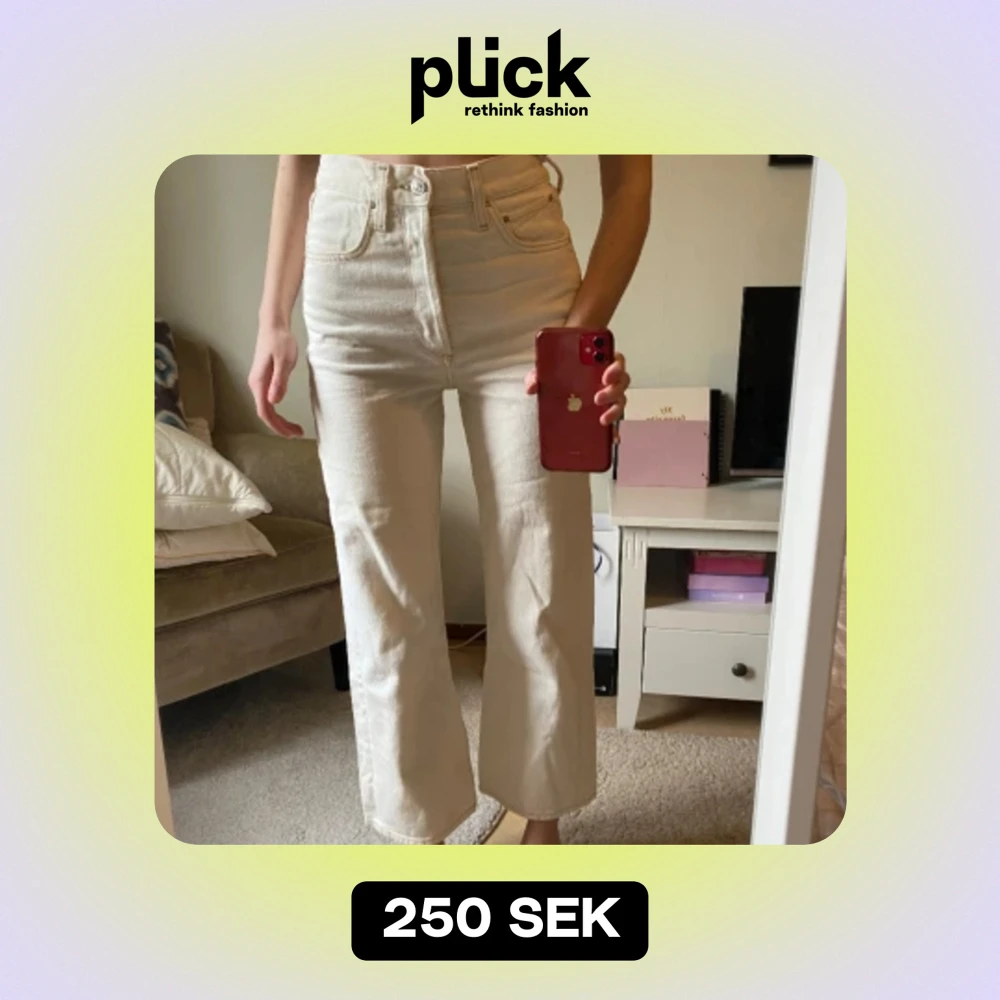 Super snygga vita jeans som är ankellånga vilket gör dom mer unika🤩 Tycker även om att dom inte är kritvita utan lite mer åt det beige/vita hållet🥰