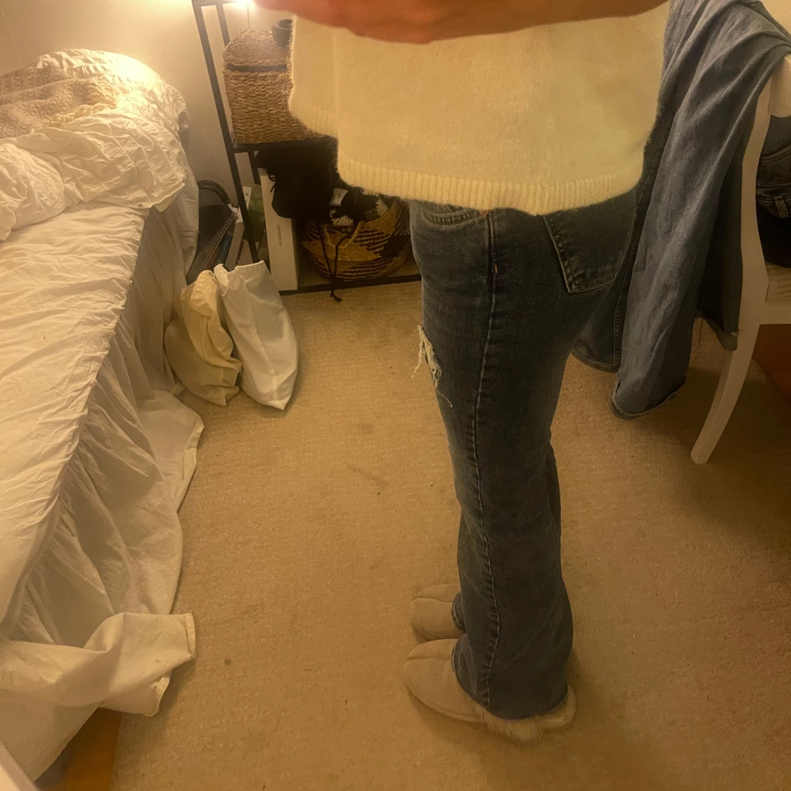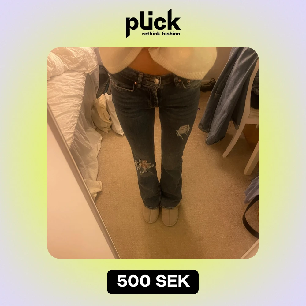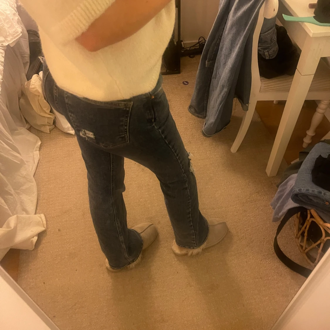 Ett par skit snygga jeans från gina som jag klippt egna hål i! 🤩Jag är 165 cm och de passar perfekt på mig. Det är 2 hål på framsidan och två små på bakfickorna men de är bara på fickorna alltså inte på innersta lagret av jeansen! Midjemått 36 cm , innerbenslängd 80cm , grenhöjd 20 cm💕 Hör av er om ni har frågor!