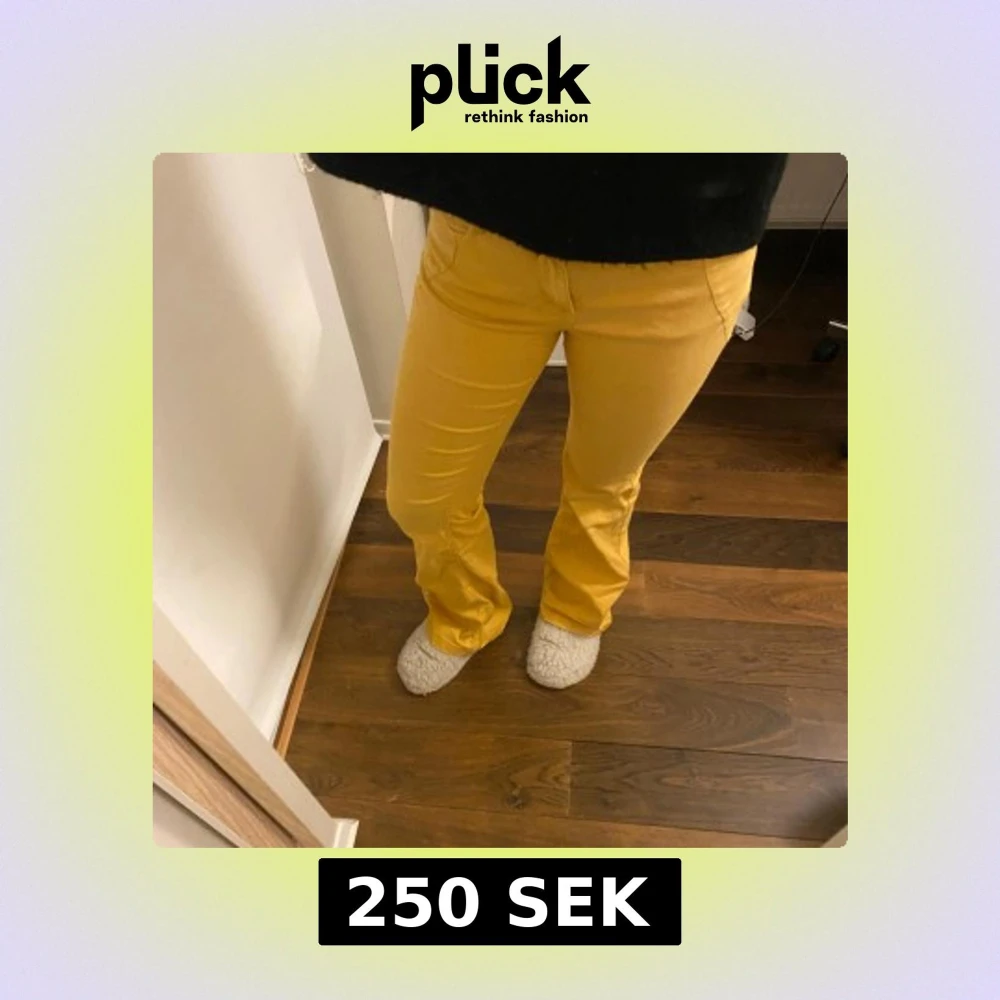 Säljer ett par snygga gula jeans i bootcut-modell. De är lite slitna längst ned, se på bilder💕