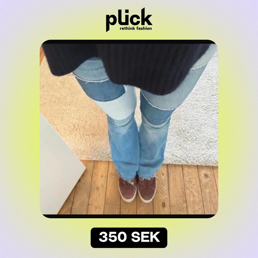 Säljer ett par unika jeans från Hollister i olika blå nyanser.