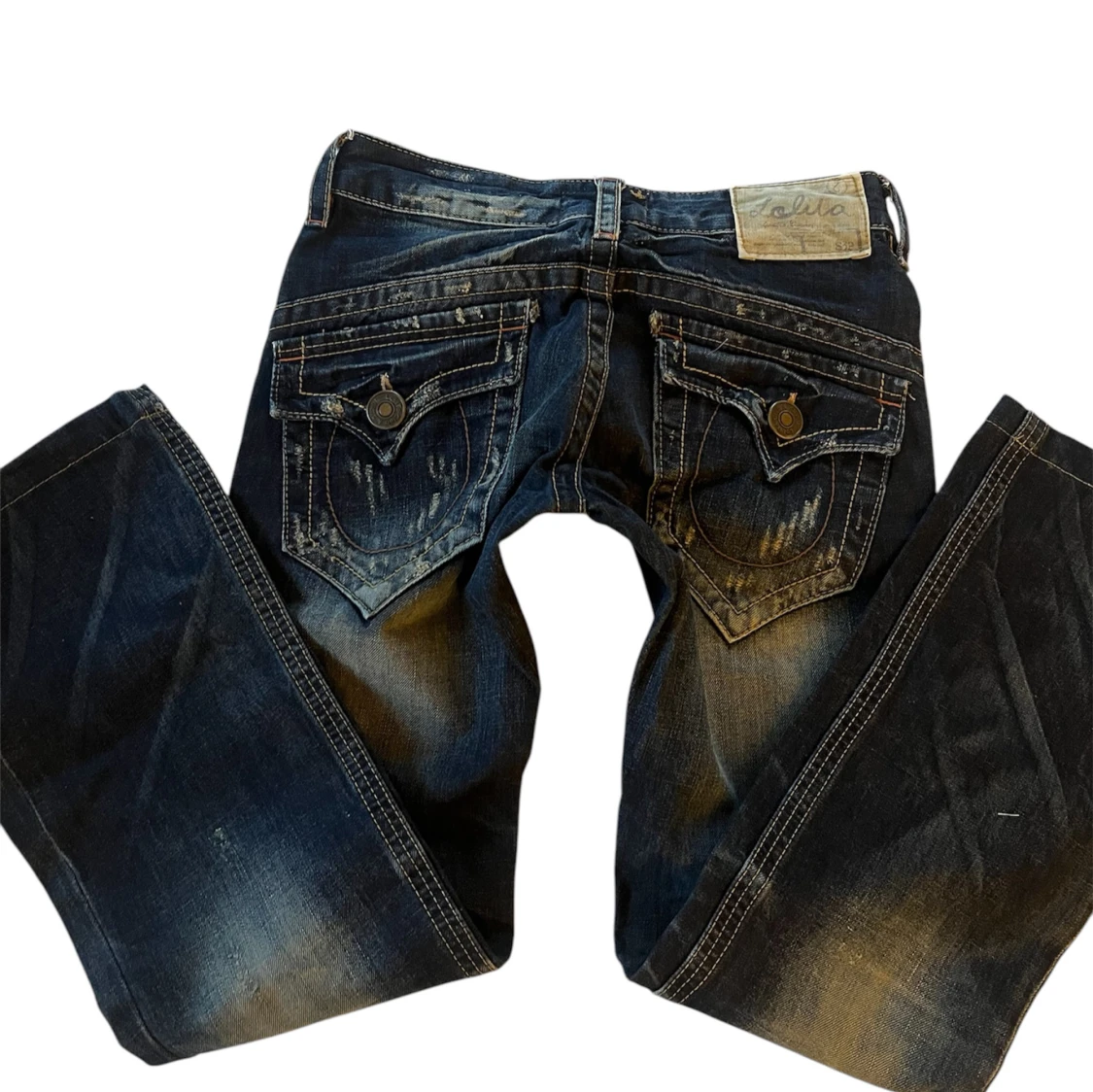 Mörkblåa y2k jeans i lowrise. Flare/bootcut. Innerbenslängd: 73 cm. Midjemått: 73 cm runtom 🫶🏼