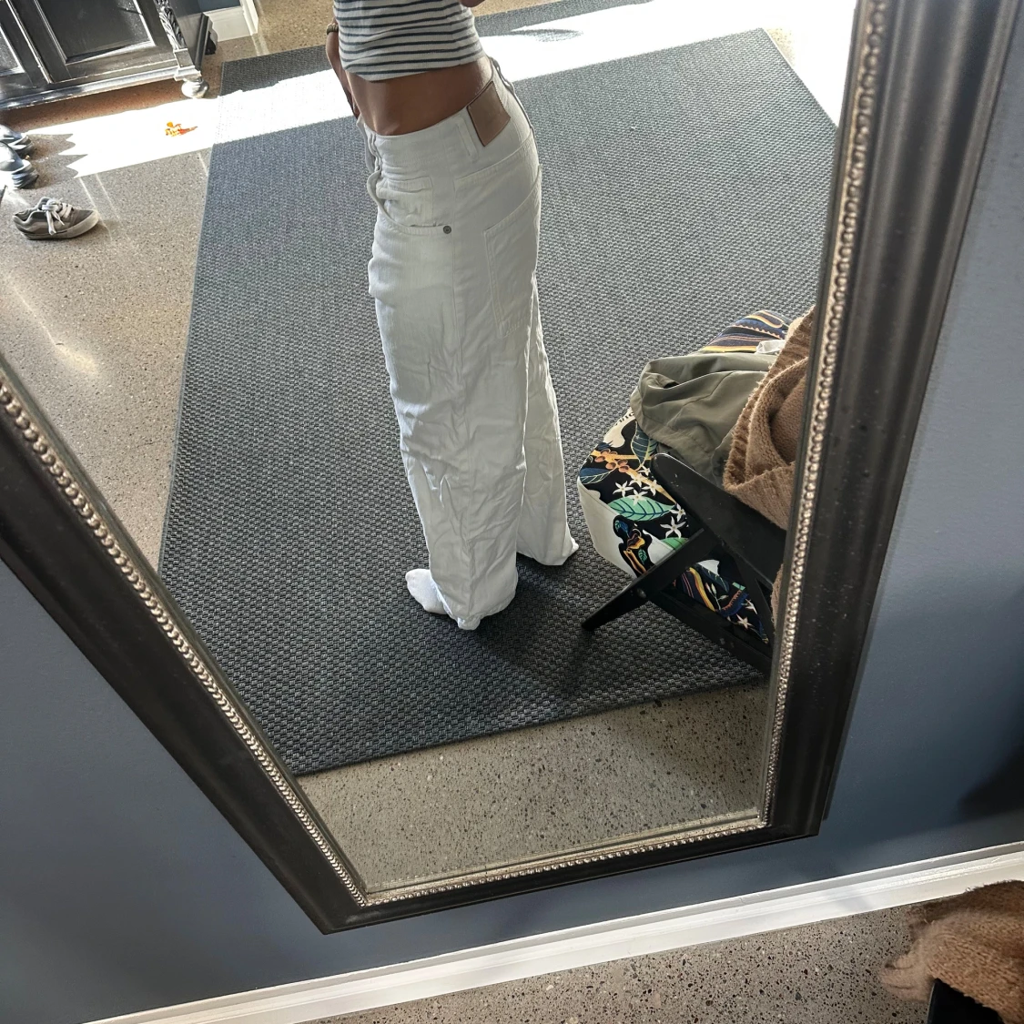 Säljer mina vita jeans från Zara väldigt coola och sköna!🥰dom är i storlek 36 och jag är 173cm lång💕