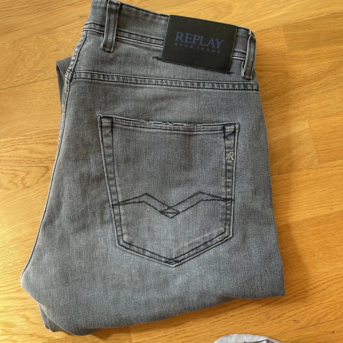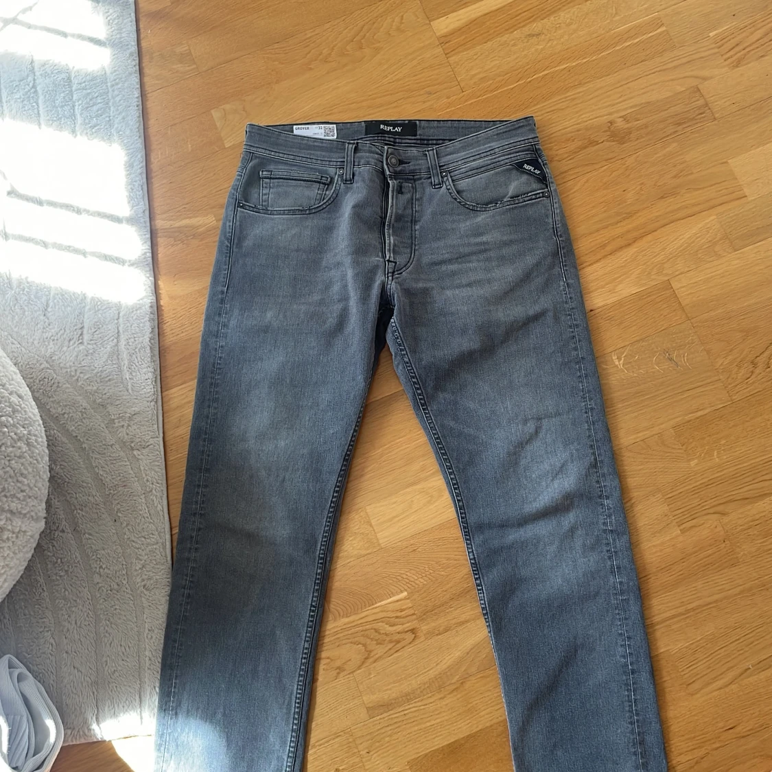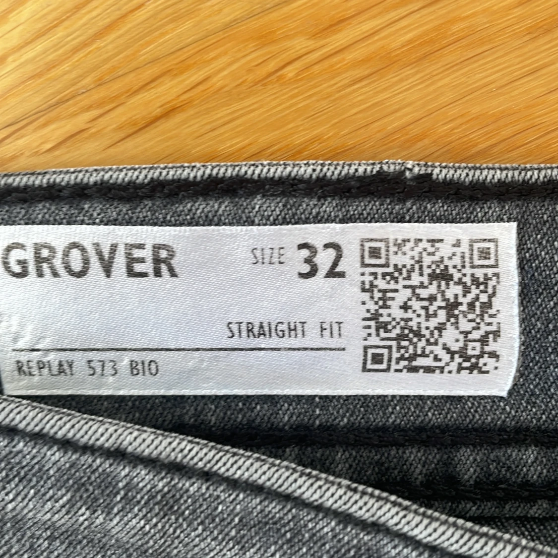 Snygga grå jeans från Replay, modell Grover, med straight fit och klassisk femficksdesign. Jeansen har en stilren look med Replay-logga på bakfickan och är tillverkade i mjukt denimtyg. Perfekta för dig som gillar en rak passform och tidlös stil.