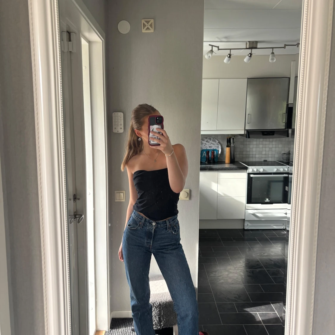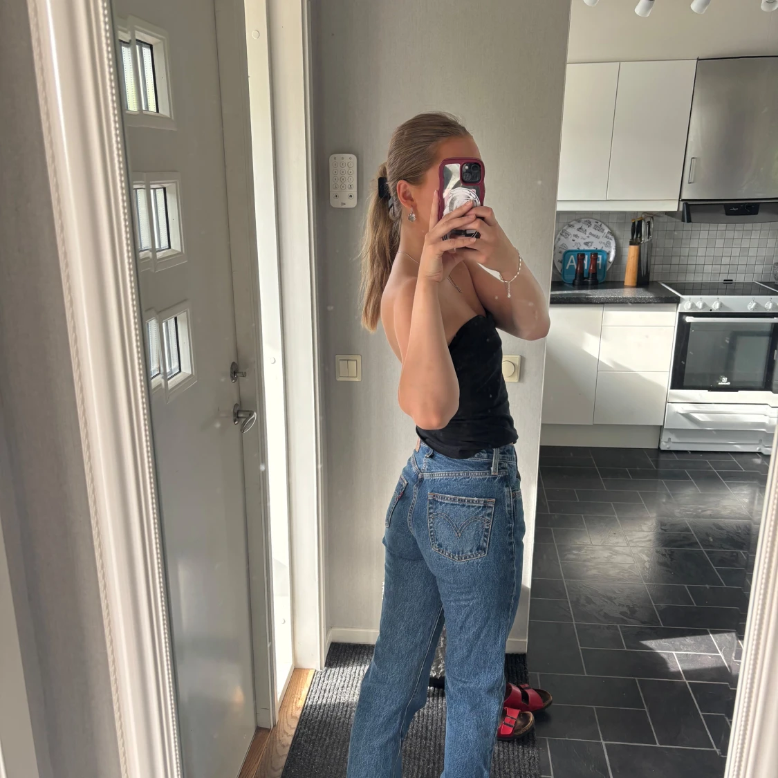 Jättesnygga klassiska blå Levi's 501 jeans med rak passform och medelhög midja! Jeansen är använda ett fåtal gånger. Storlek W23 L32, något stora i storleken💕