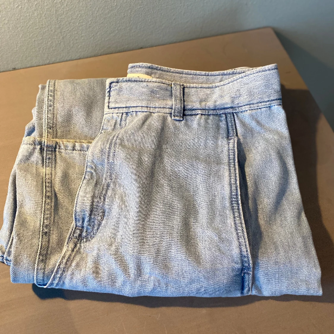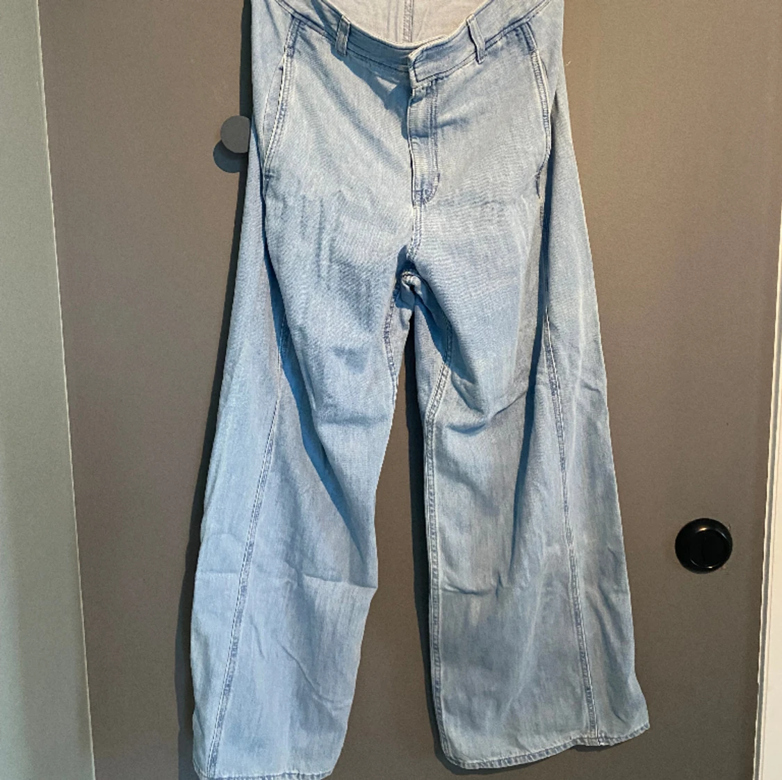 Ljust blå denimbyxa med hög midja och vida ben. Fint material som ger tyngd och snyggt fall. Mycket lite använda och i mycket fint skick.
