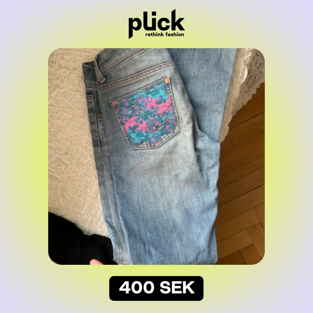 Sjukt snygga lågmidjade jeans med fina detaljer från crocker som inte går att få tag på längre! För små på mig tyvärr så därför säljer jag vidare, midjemått är 35cm rakt över🩷