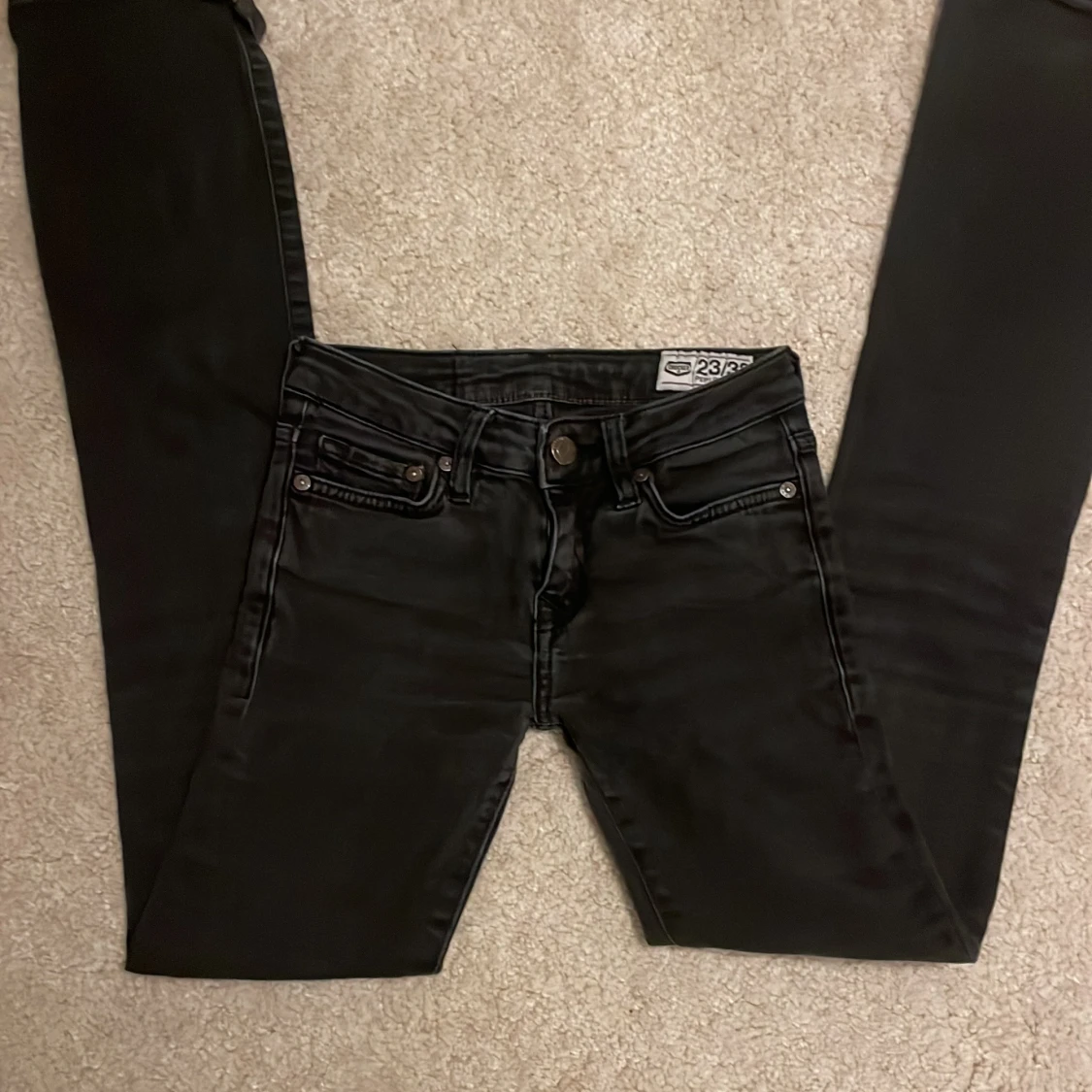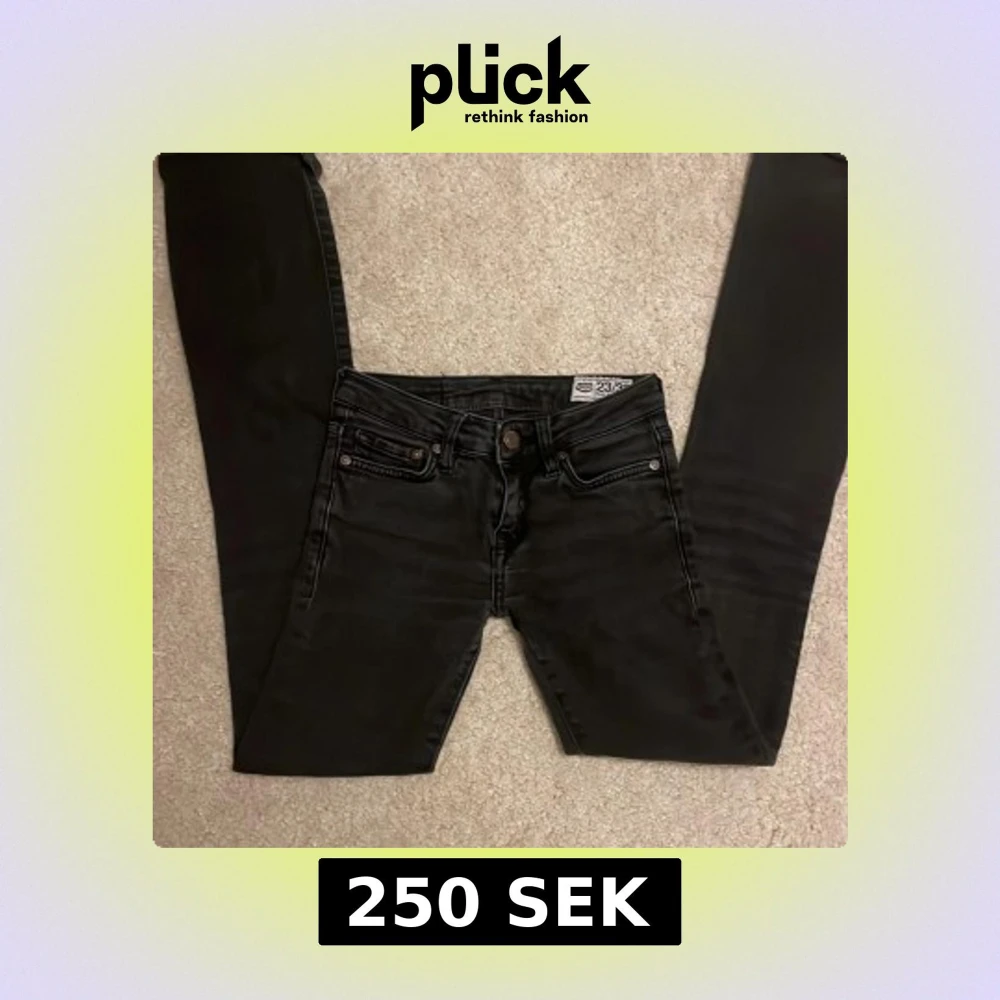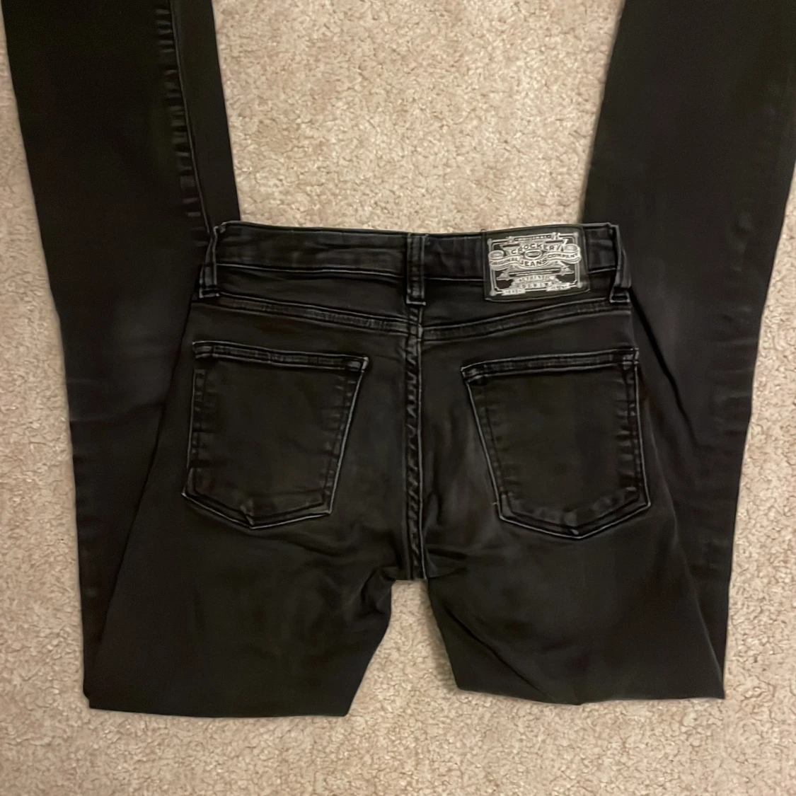 Lågmidjade och utsvängda crocker jeans i svart. Säljer då dom är för små för mig. Jeansen är knappt använda och är i väldigt bra skick! ❤️ (Pris kan diskuteras)
