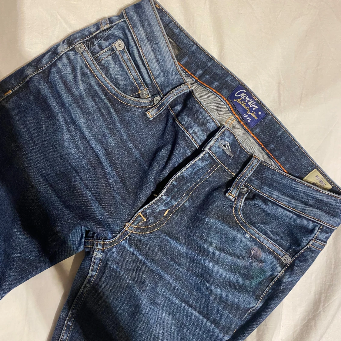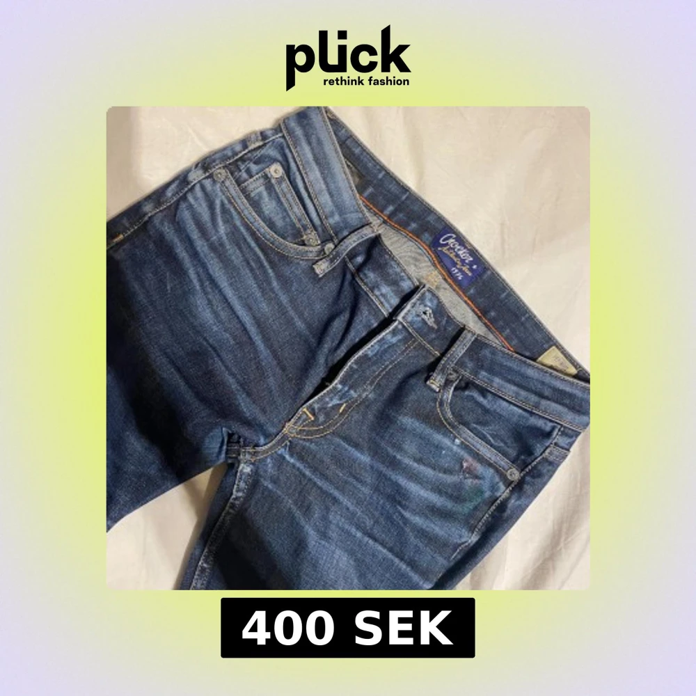 Säljer mina Crocker jeans då de inte längre kommer till användning. De är lågmidjade och flare/bootcut och passar mig som vanligtvis har storlek S (mått syns i sista bilden). Jag är 175 och de är lite långa för mig. De är använda men har tagits hand om bra, de har några små defekter (bilder kan skickas i privat ifall intresserad) därav priset. Köpt för 1400, säljer för 400