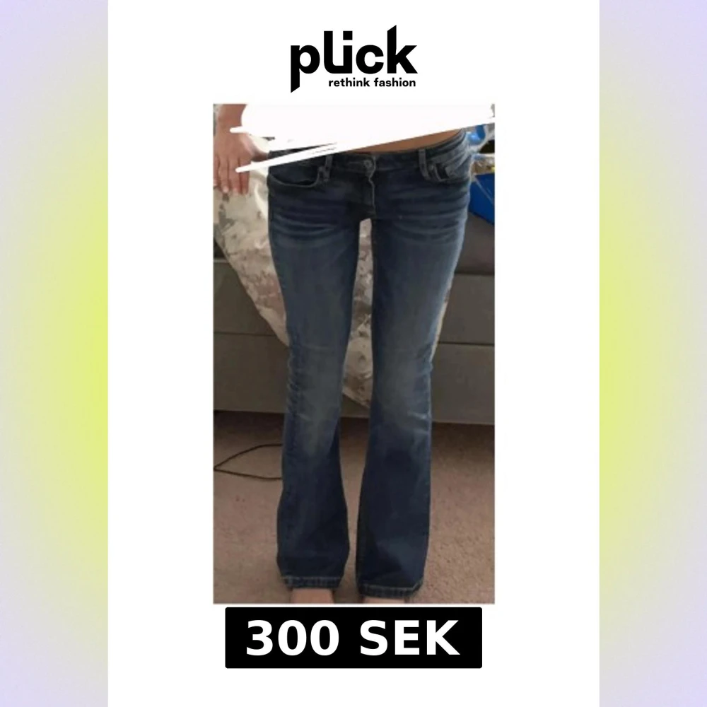 Snygga blå jeans från Crocker med klassisk bootcut passform och låg midja. Jeansen har slitningar och tvättade detaljer för en cool look, fem fickor och tydliga sömmar. Perfekta för dig som gillar en avslappnad stil med lite edge. Innerbenslängd: 81, midja rakt över: 36cm