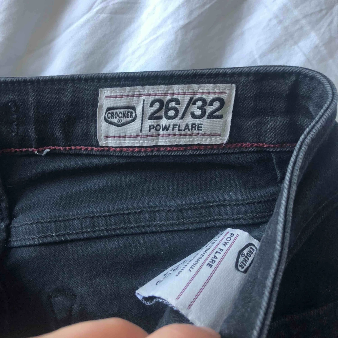 Svarta jeans i pow flaire modell från crocker. Små slitningar på vänstra benet (se bild). Annars jättefint skick. Strl W26 och L32❤️ Köparen står för frakt💕