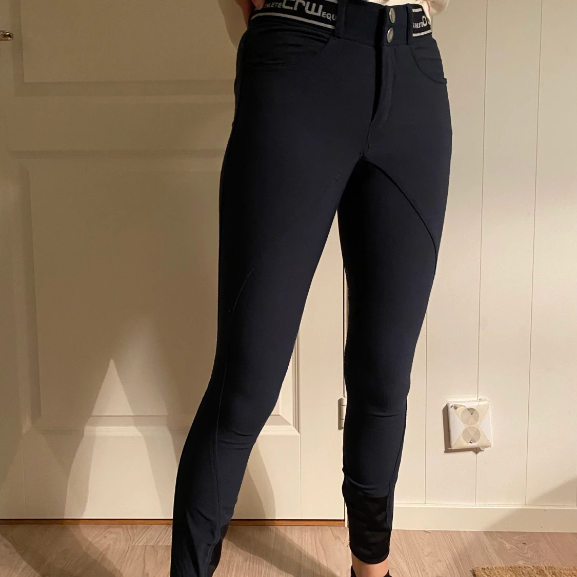 Marinblåa CRW barn ridbyxor från HÖÖKS i storlek 160. Använda men i bra skick. De är halvskodda med silikon.