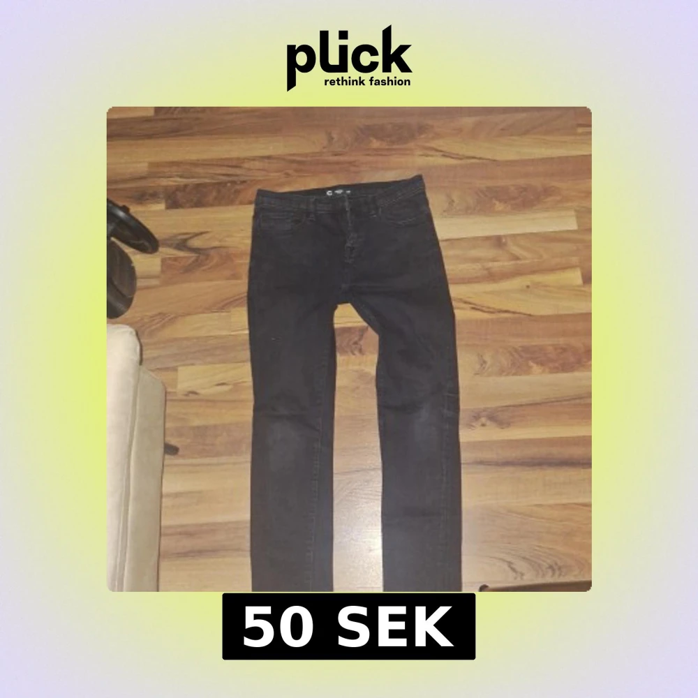 Säljer ett par svarta jeansbyxor från Cubus med klassisk femficksdesign. Byxorna har en smal passform och normal midja. Perfekta till vardags och enkla att matcha med olika stilar.