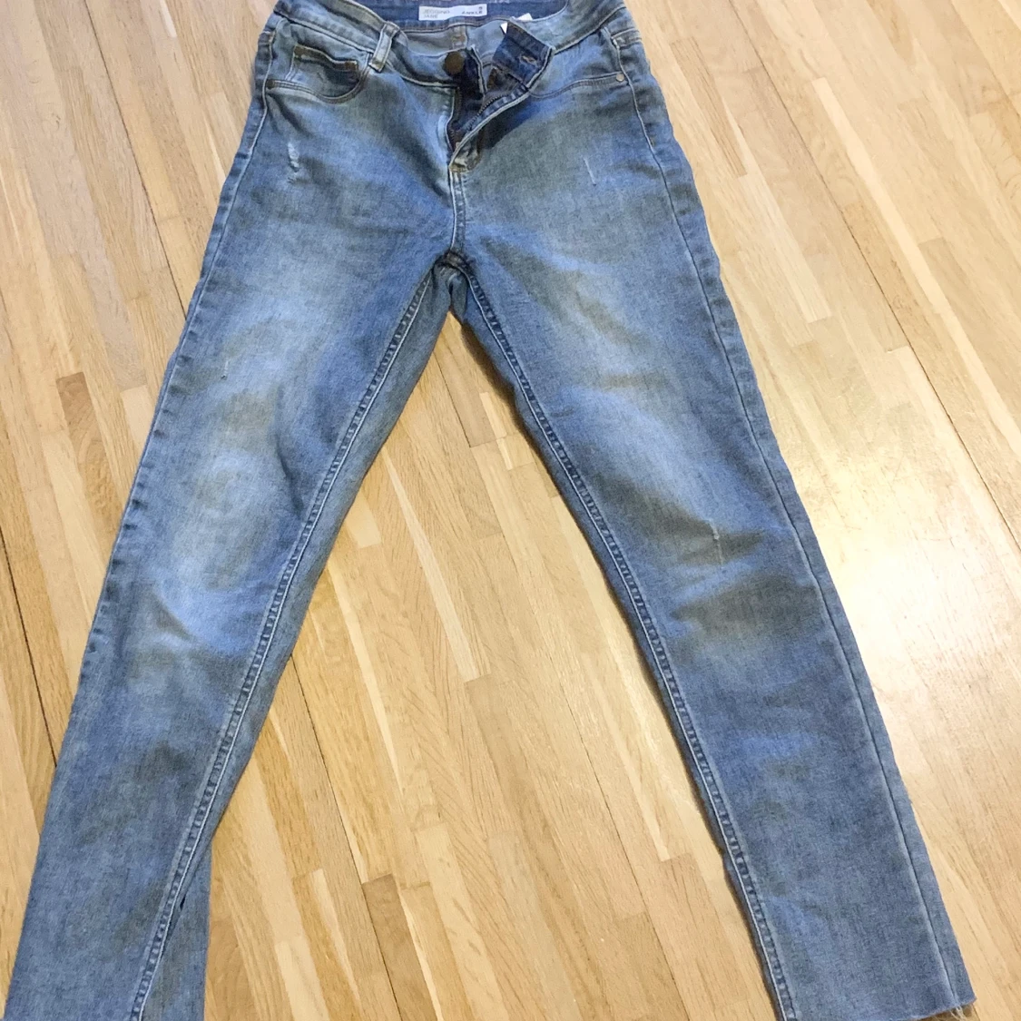 Stretchiga jeans från Cubus. Storlek s skinny passform. De har små slitningar på knät blandannat som var så som nya. De är även avklippta i benen. Midjan är Midwaist. Är väldigt sparsamt använda.