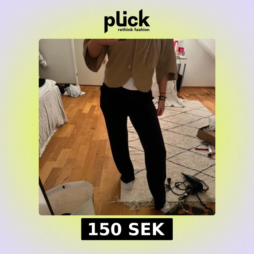 Snygga svarta byxor med en klassisk passform. Perfekta för en stilren look. De har en normal passning och är midwaist, vilket gör dem bekväma att bära hela dagen.