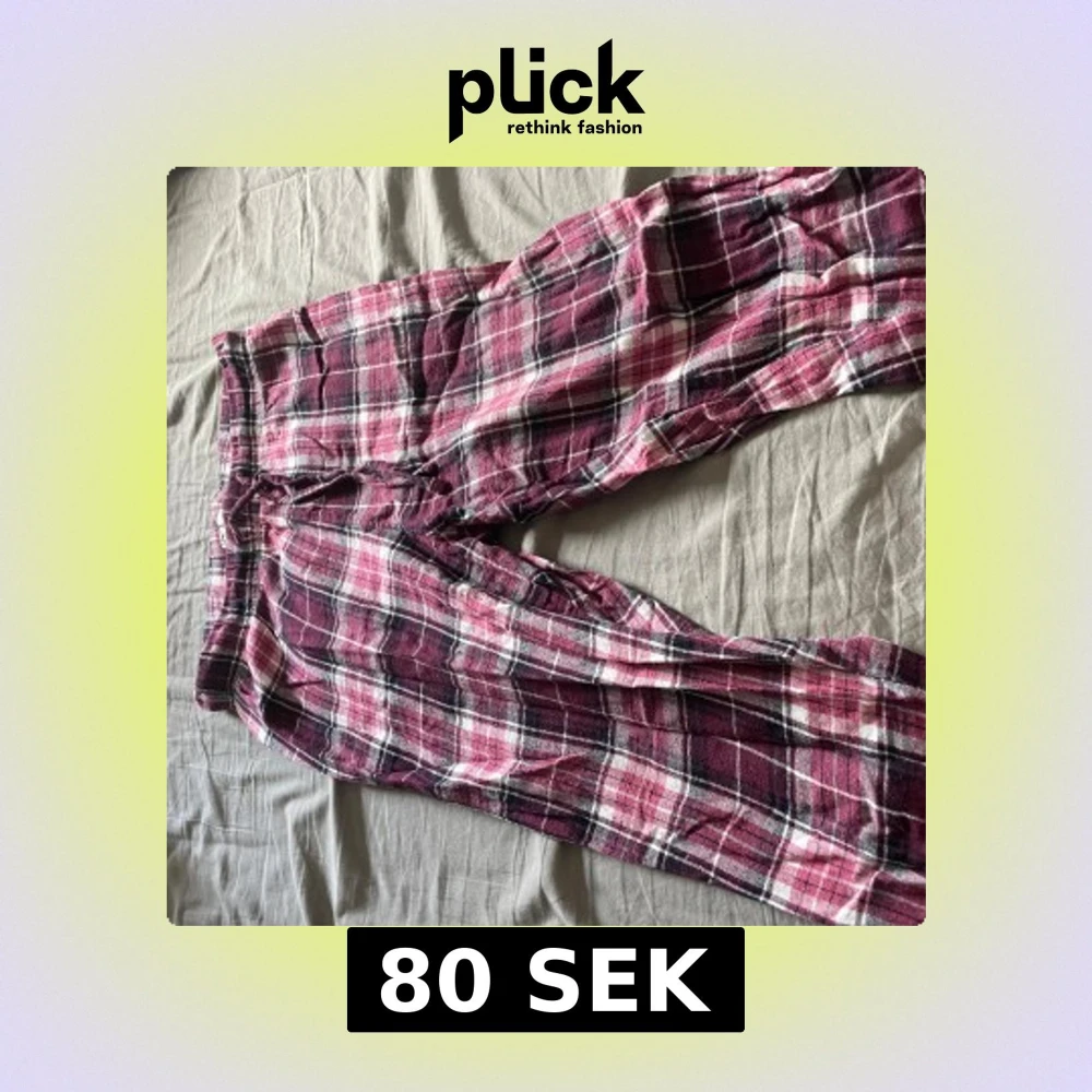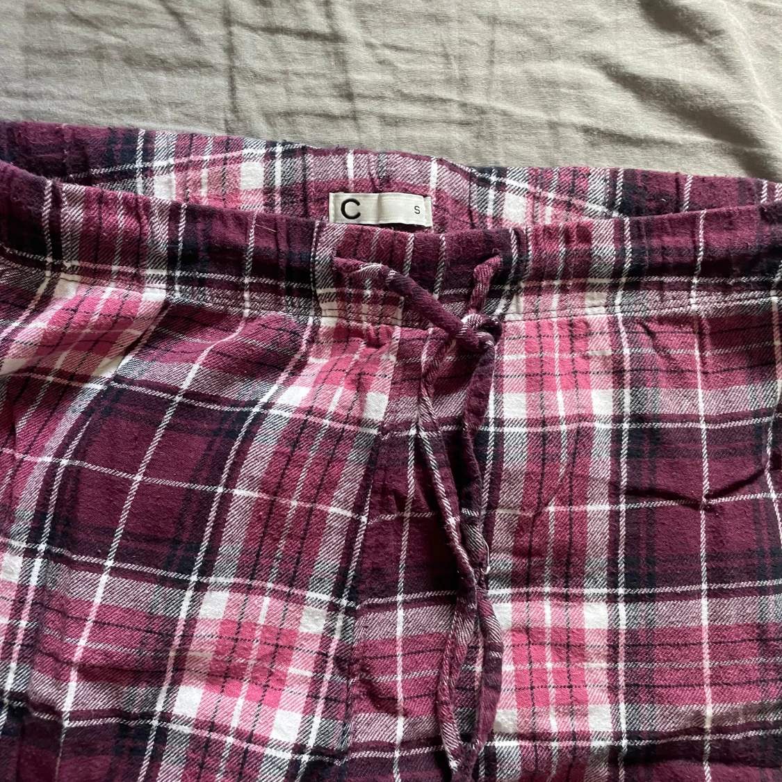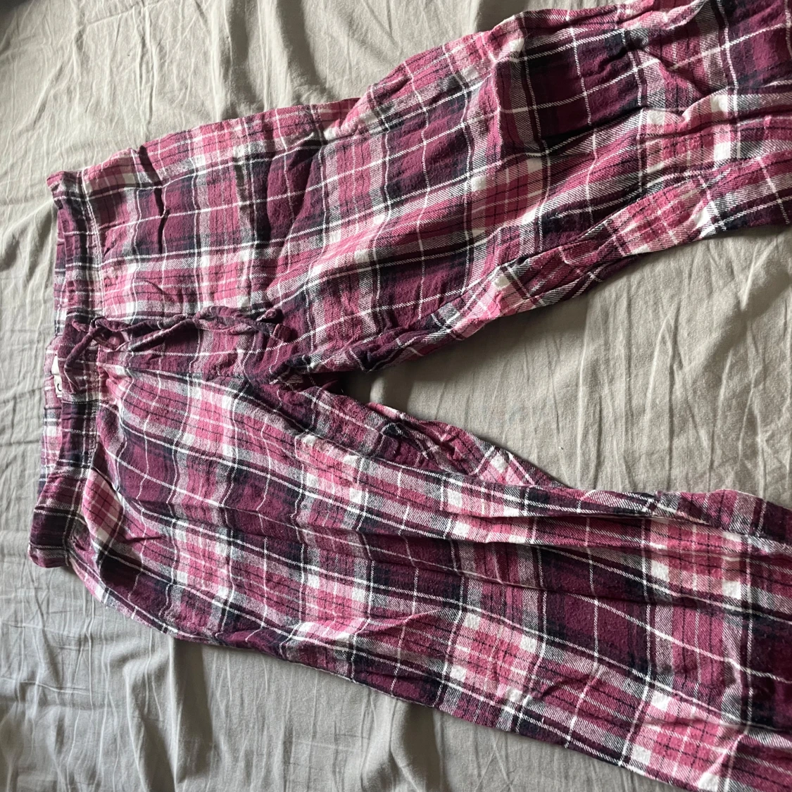 Rosa och vinröda rutiga mjukisbyxor med snörning
