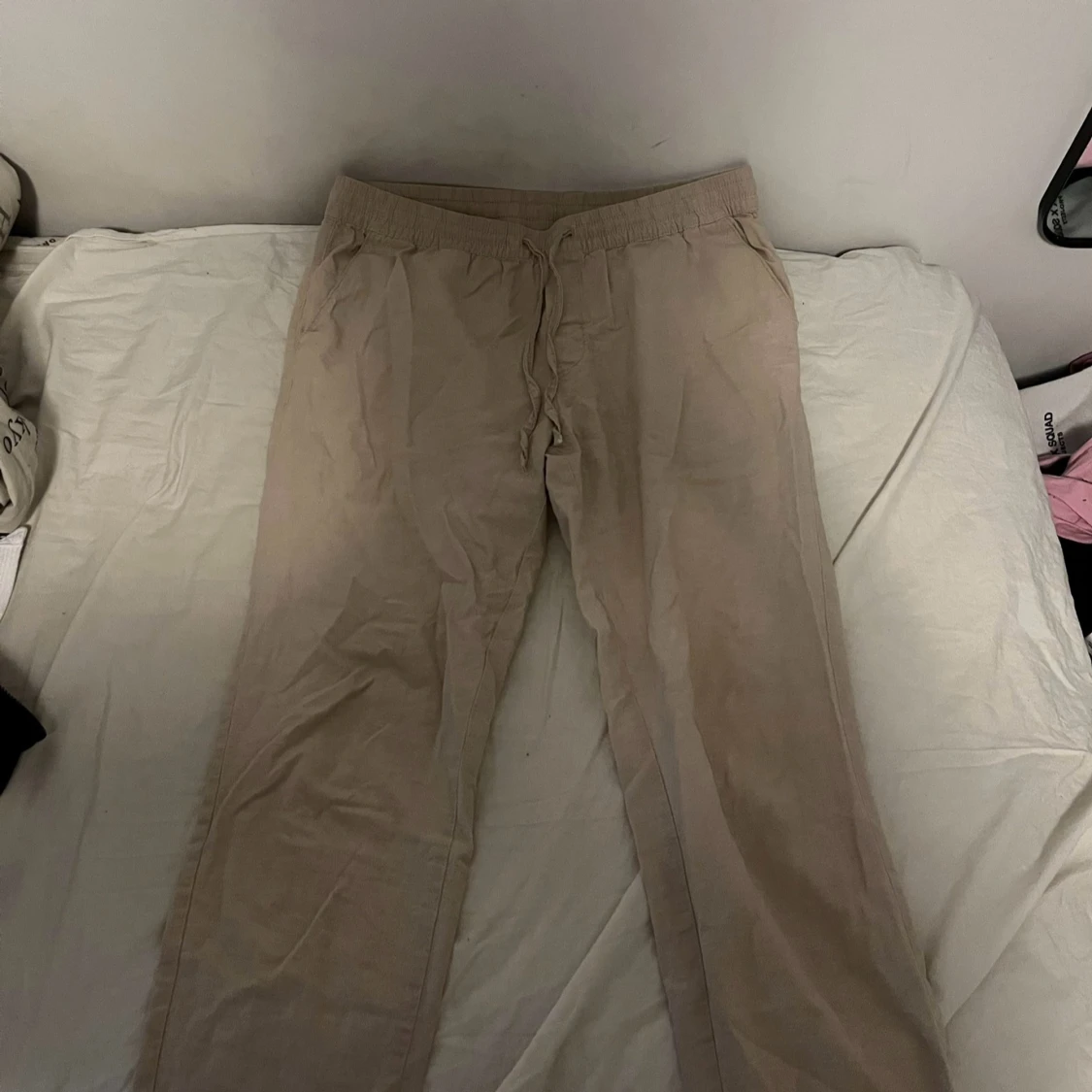 Säljer mina linnebyxor som nu är för små. Skicket är nästan som nytt, storleken är L men är kortare där nere. Passar perfekt nu till sommaren
