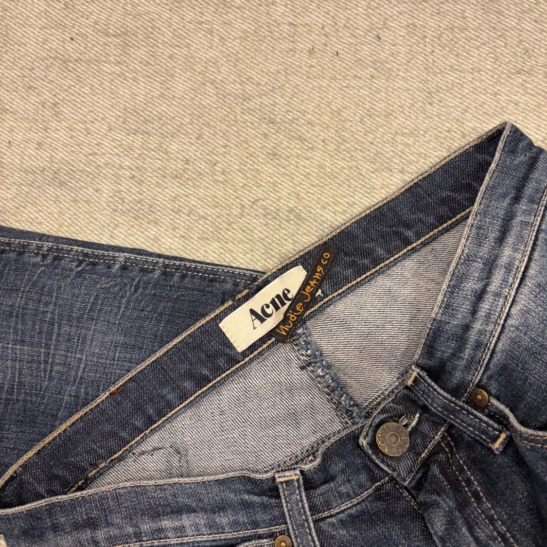 Säljer ett par sjukt unika och feta Acne/Nudie jeans som är custom made, ny pris på acne jeansen ca 5500 och ny pris på nudie jeansen är 1600 de är i sjukt bra sick och storlek 29/32 pris kan alltid diskuteras