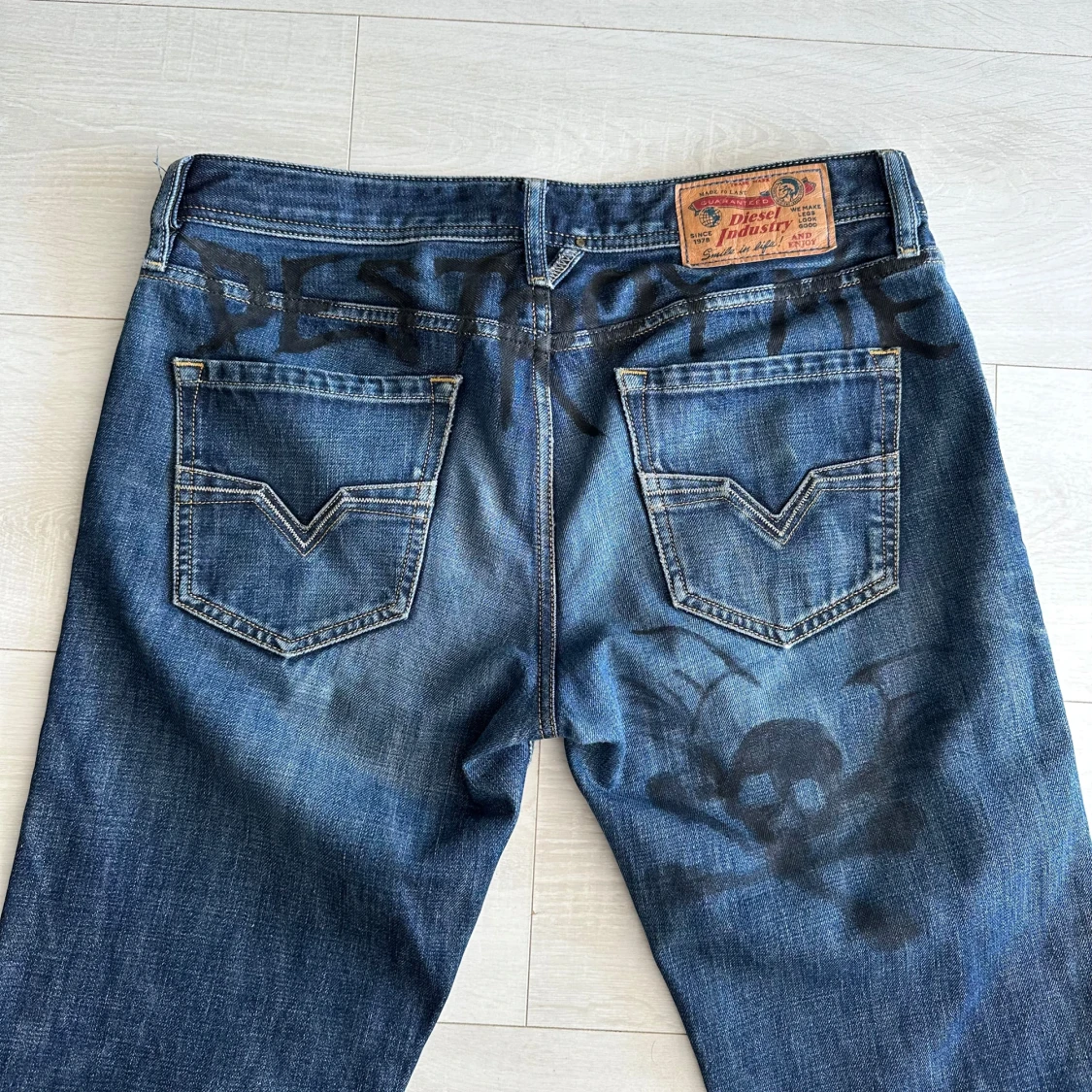 custom jeans, size W32 L34, midja44cm, innerben79cm, ytterben105cm, benöppning22cm