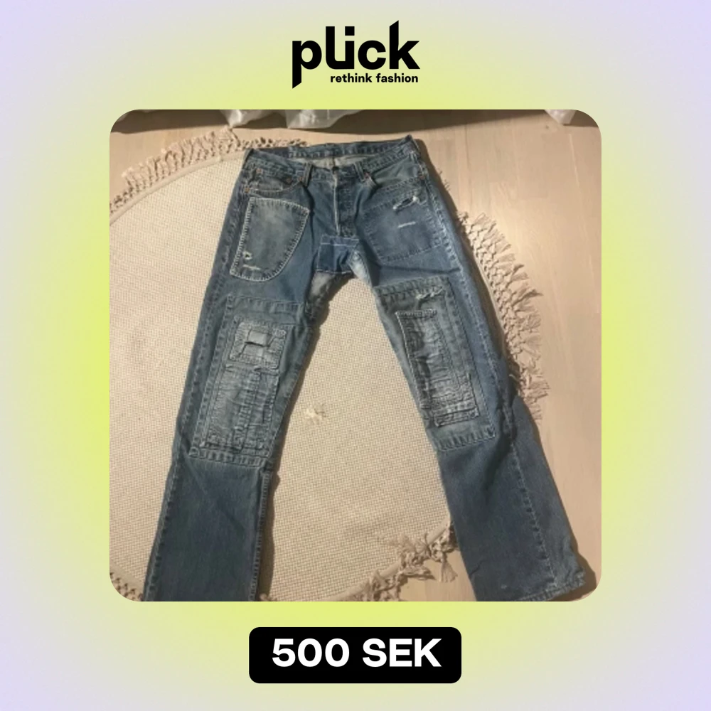 Säljer ett par custom made Levis 501 för den kommer inte till användning. Skick: se bilder. Midjan: 40. Yttrelängd: 101. Benöppning: 20. Möts i Gbg annars står köparen för frakten.