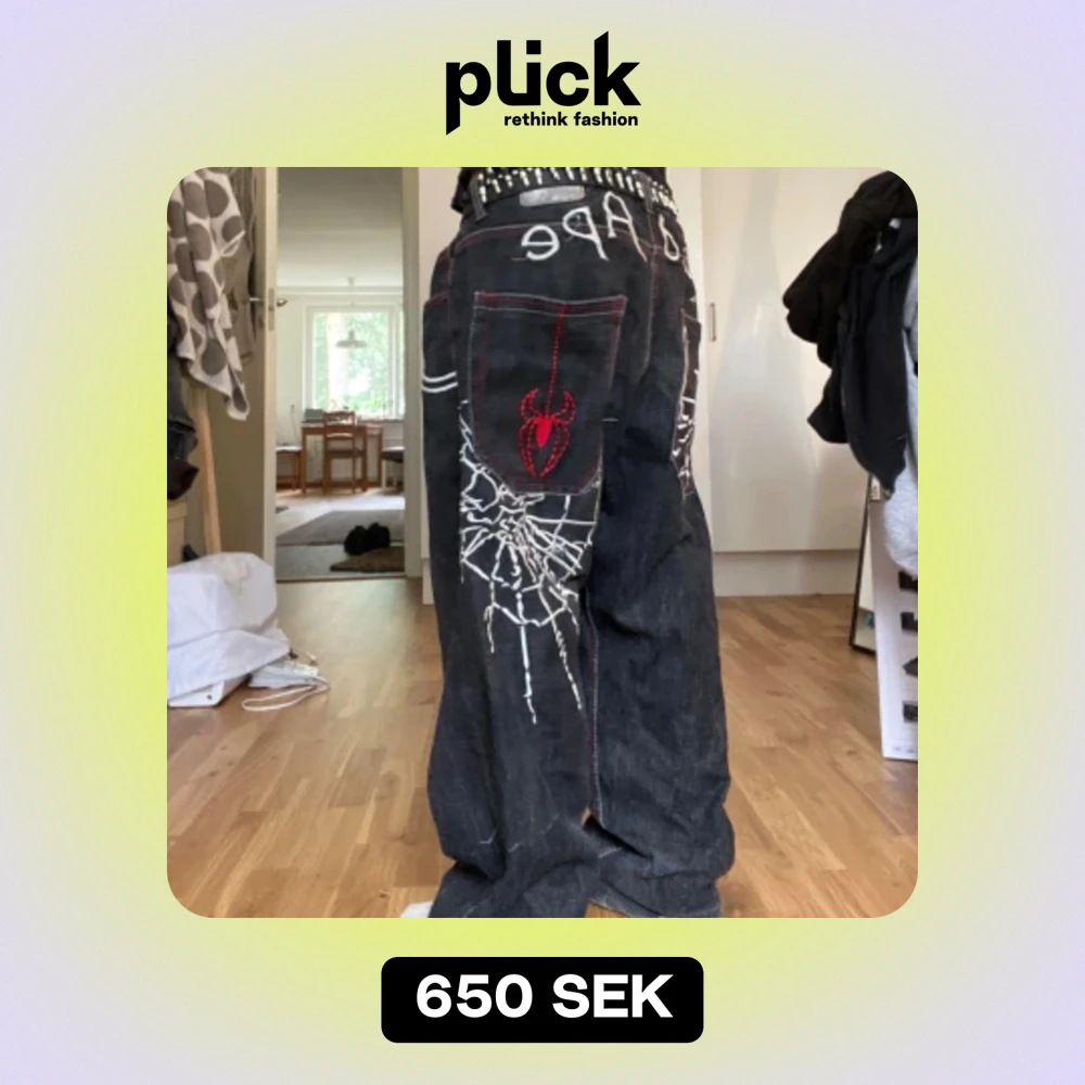 Sjukt snygga jeans från red ape, säljer då dom inte används. Ganska slitna längst ner annars bra skick! Storlek: 36. Midjemått: 48cm rakt över Innerbensmått: 85cm Benöppning: 25cm