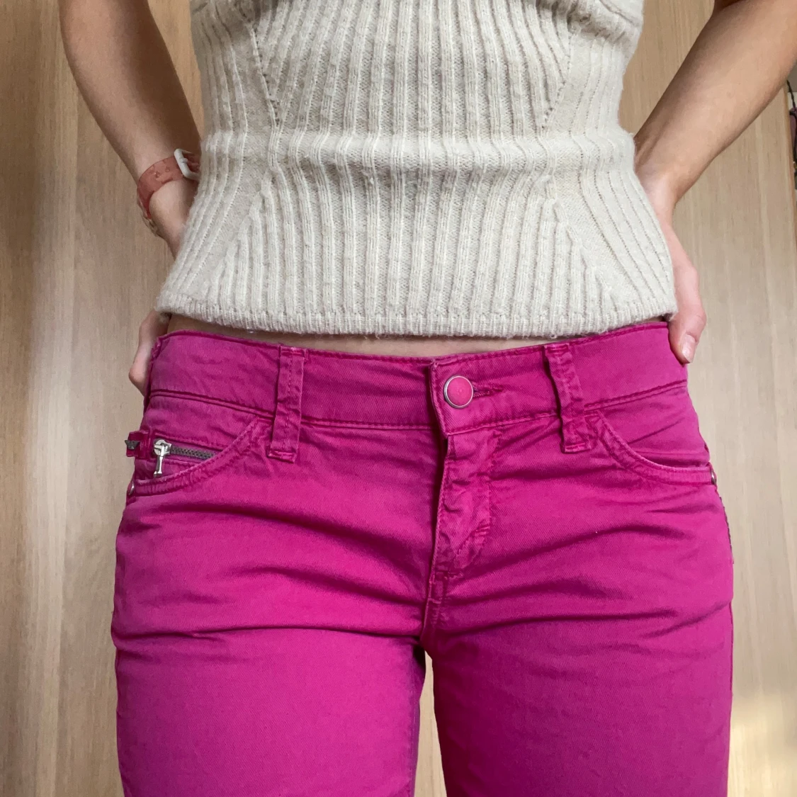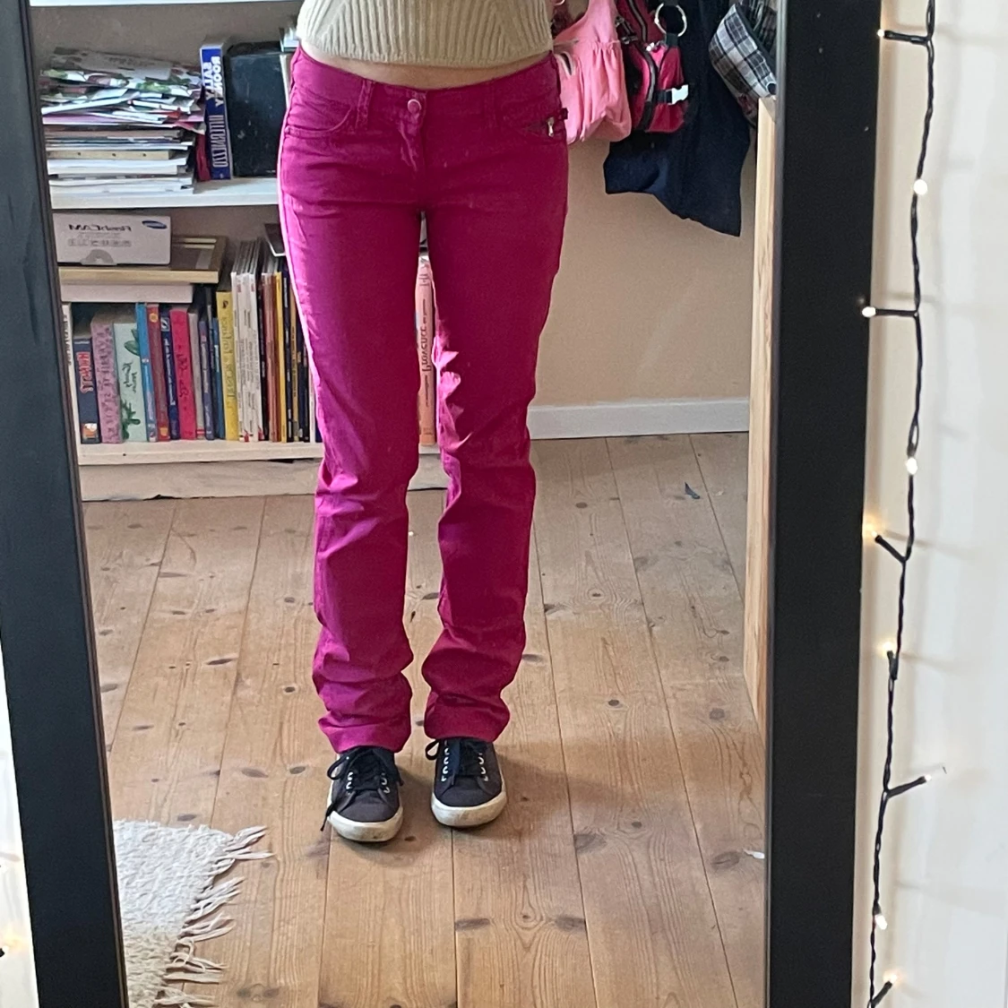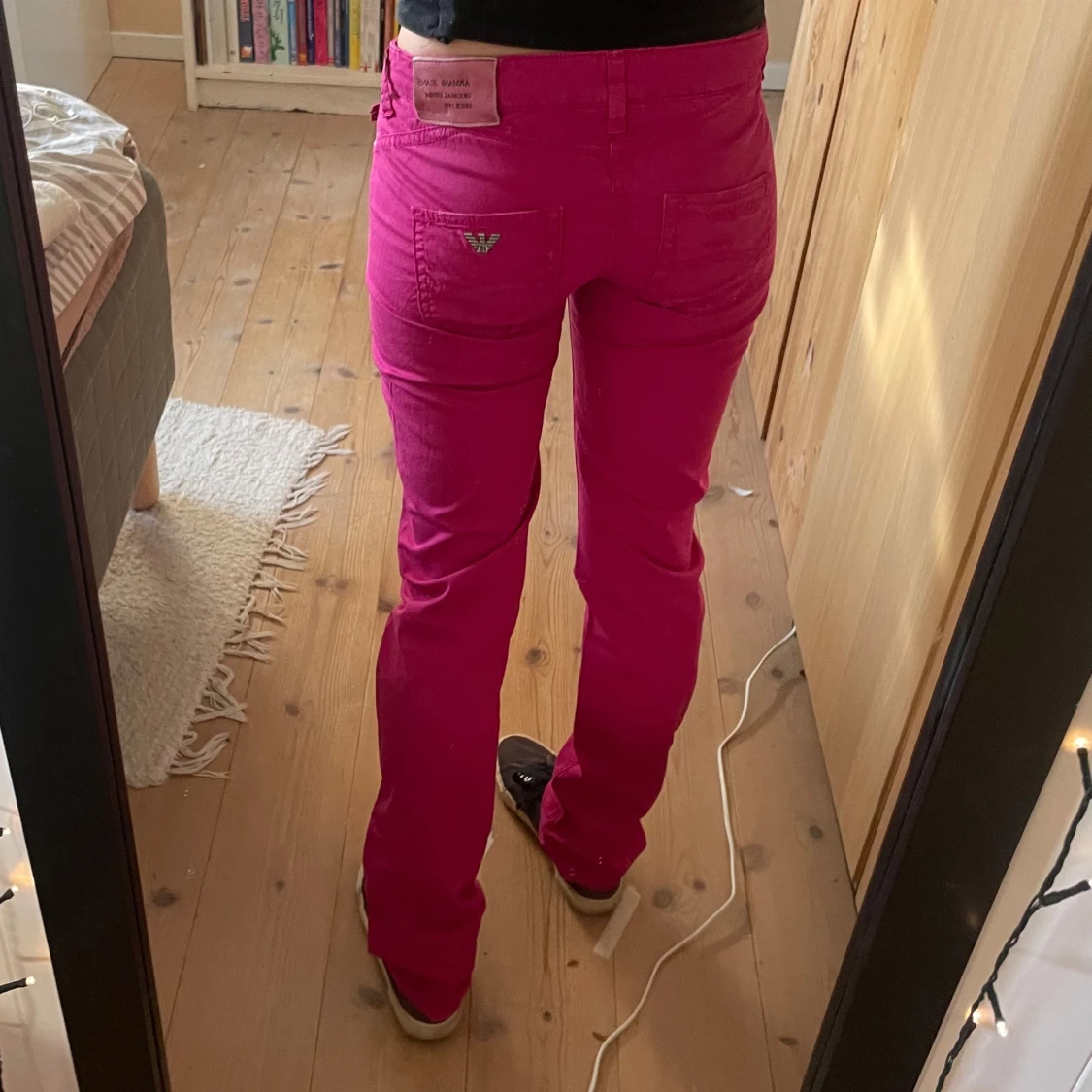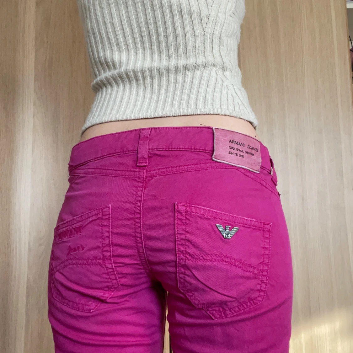 Rosa lågmidjade byxor från Armani Jeans med dragkedja och knappdetaljer. Straight leg storlek 27 💝