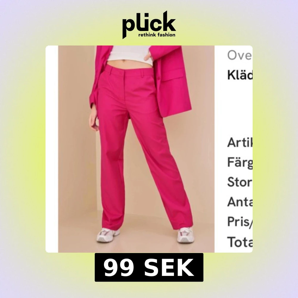 Säljer ett par oversized kostymbyxor i en stark rosa färg. Byxorna har rak passform. Köpt från Nelly i storlek 36.