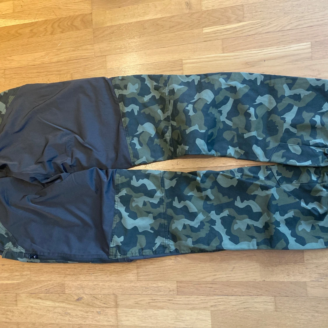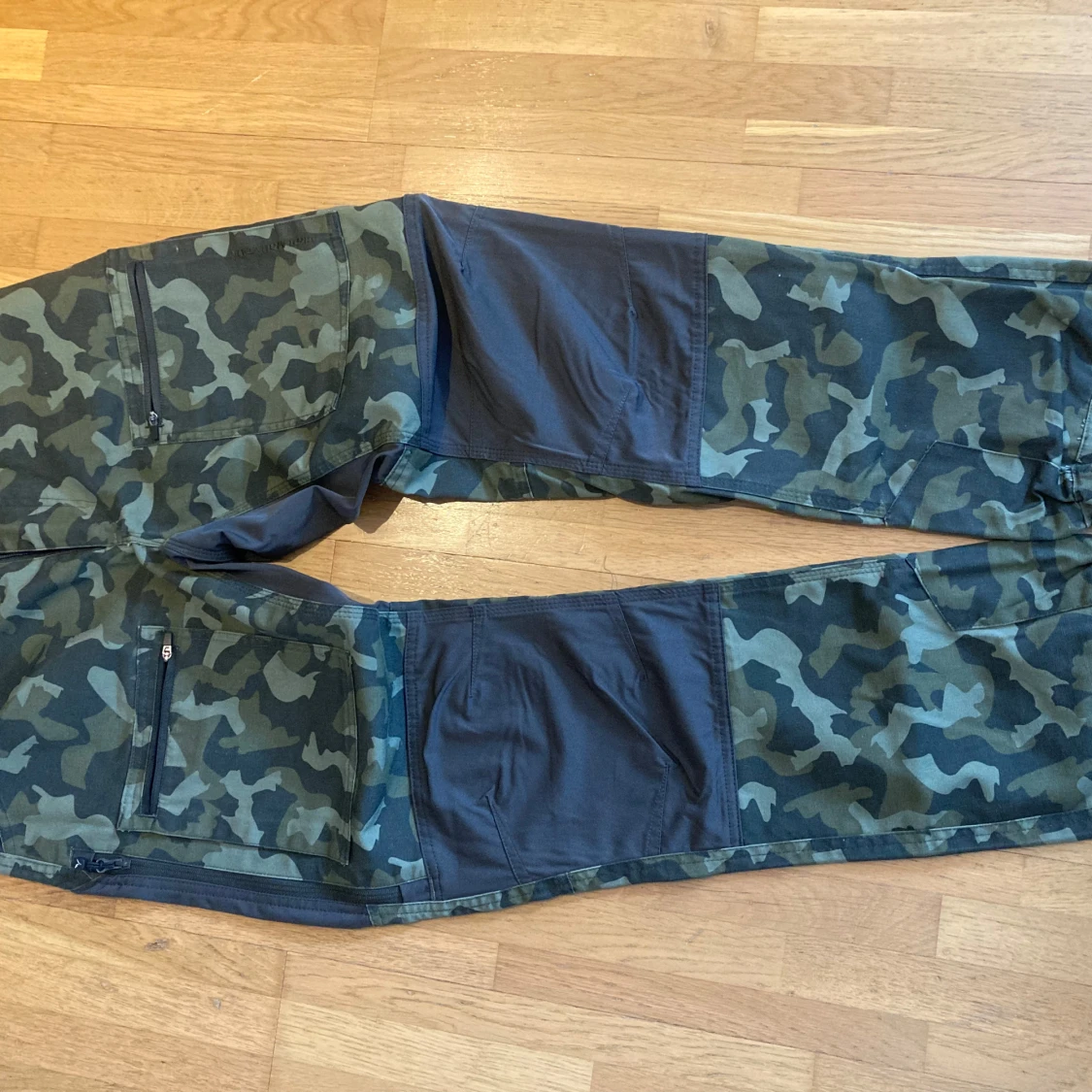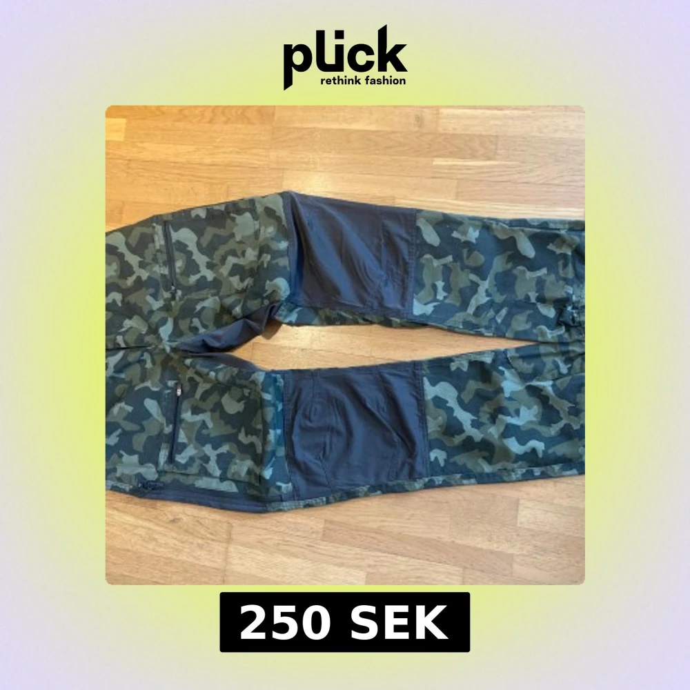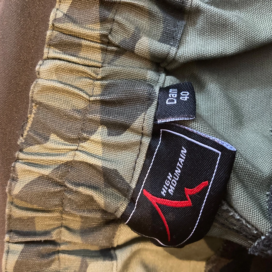 Snygga camouflagebyxor från High Mountain med elastisk midja och flera praktiska fickor. Lite använda