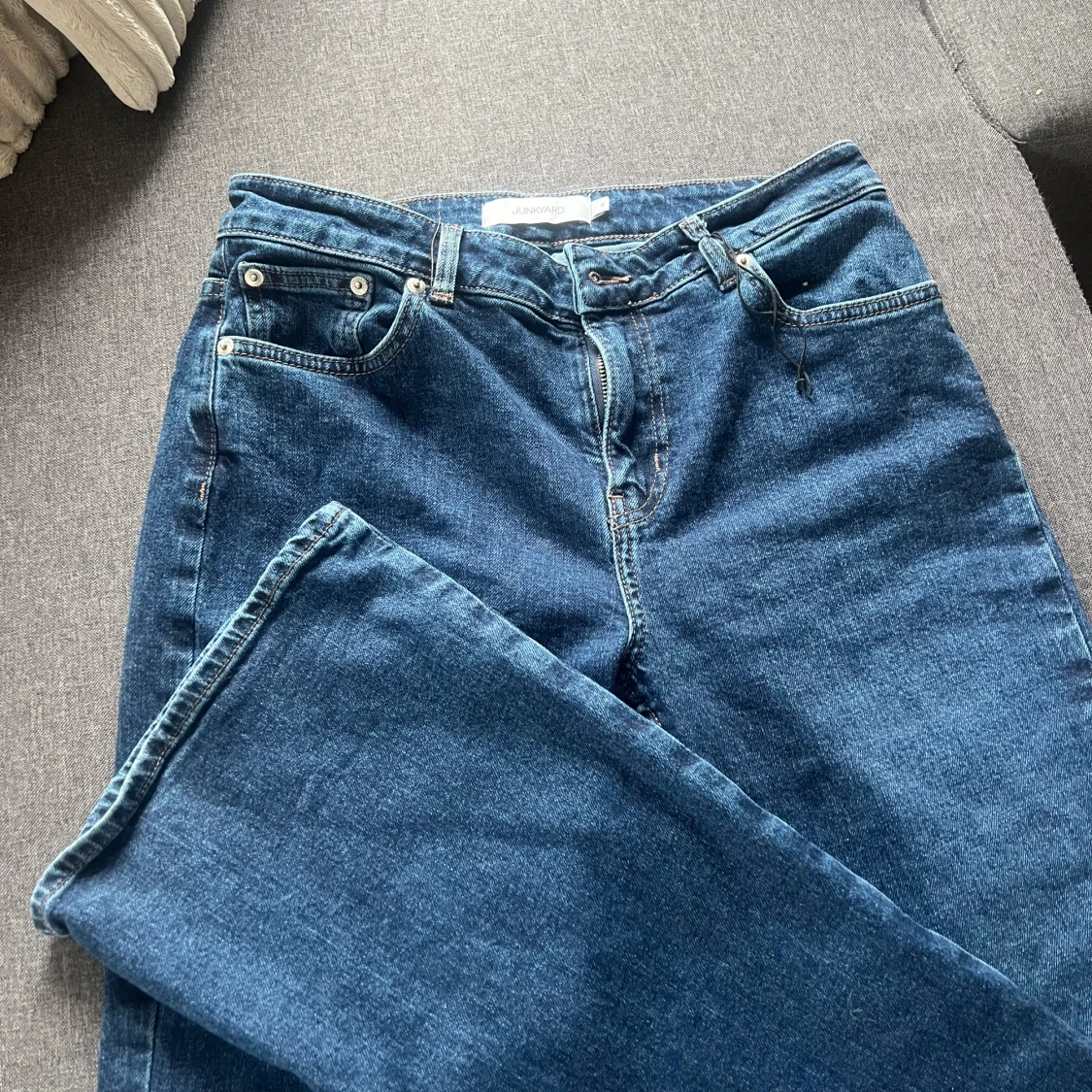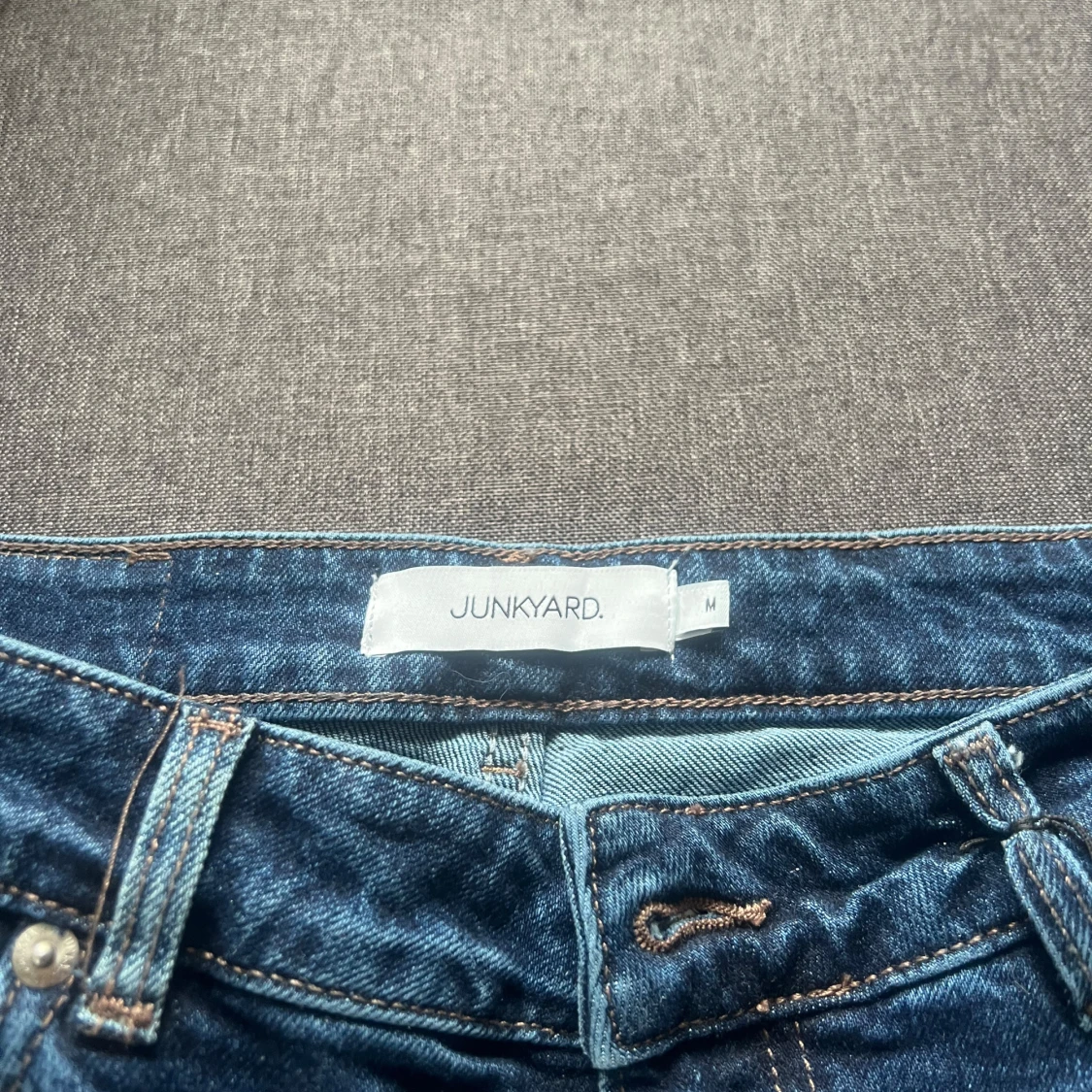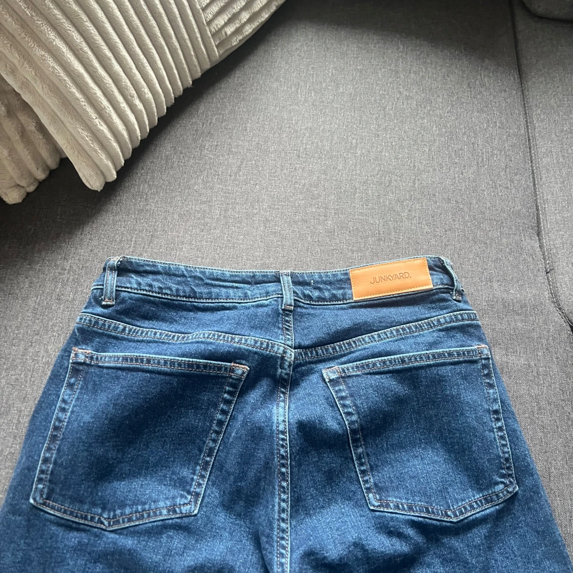 Säljer ett par klassiska blå jeans från Junkyard i modell med normal passform. Jeansen har fem fickor, knappgylf och raka ben. Perfekta till vardags och lätta att matcha med olika stilar.