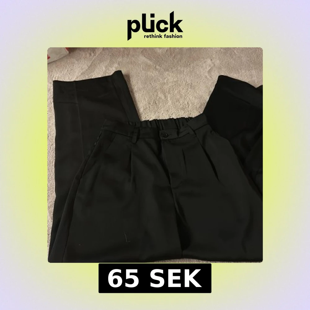 Säljer ett par svarta finbyxor från hm jag säljer då dom inte passar mig riktigt och är för stora priset kan diskuteras💗