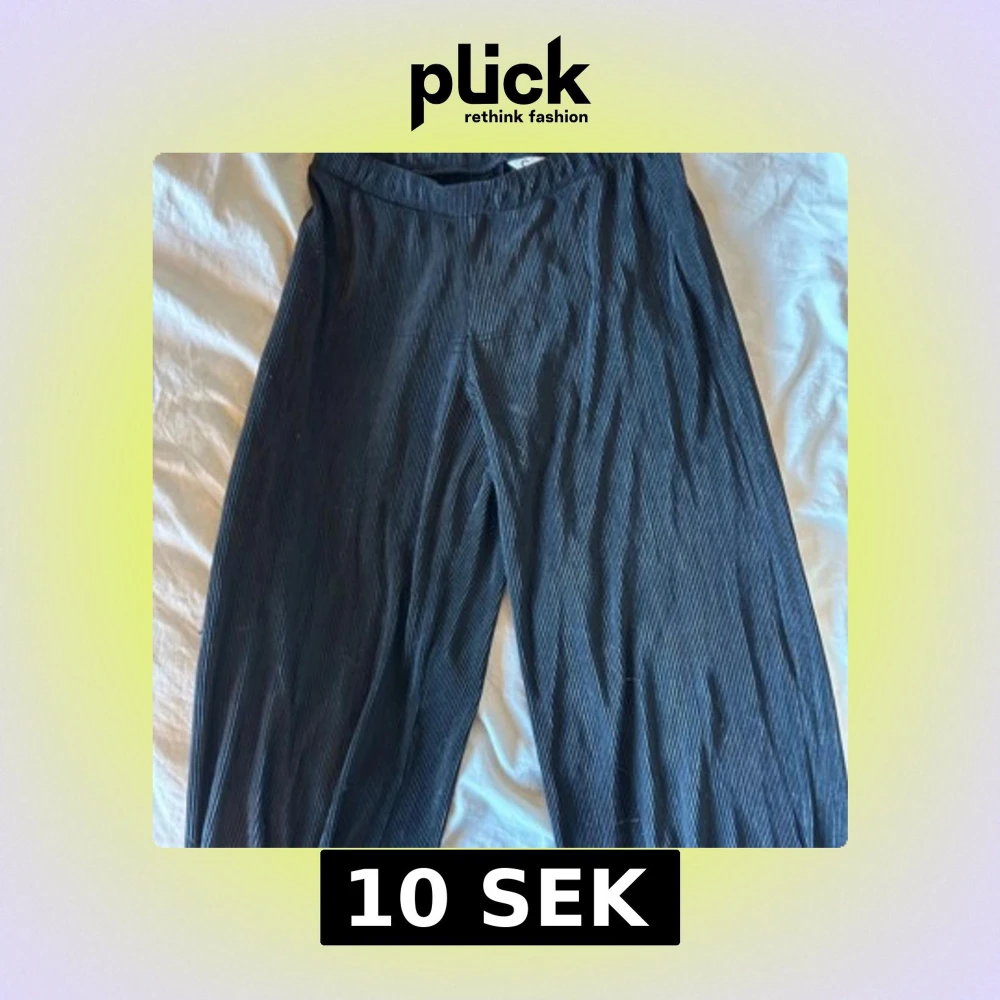 Snygga svarta ribbade byxor med elastisk midja. Perfekta för en avslappnad stil med en touch av elegans. De har en loose passform som ger en bekväm känsla hela dagen. Säljs i befintligt skick.
