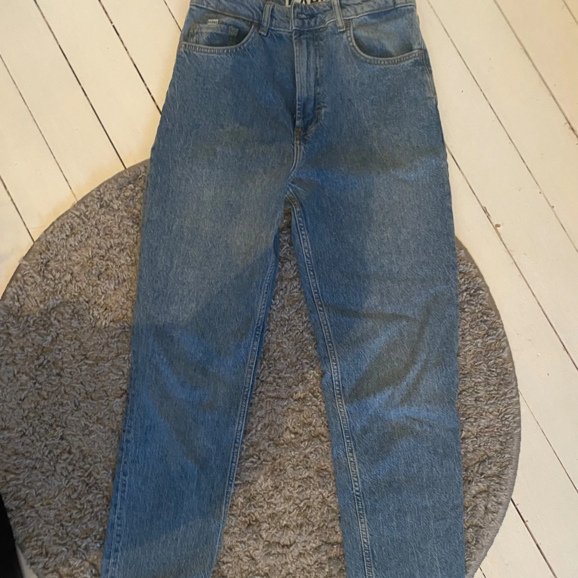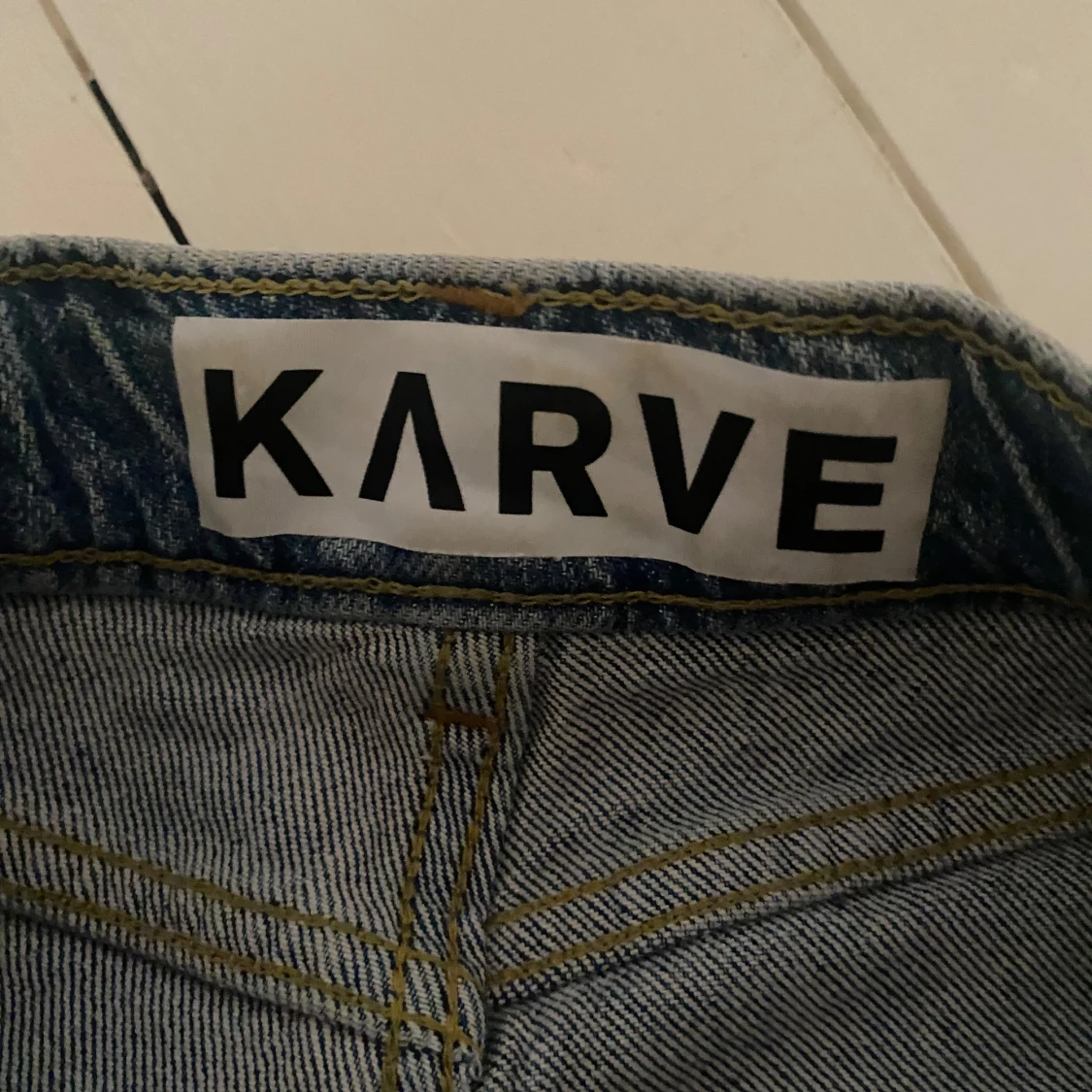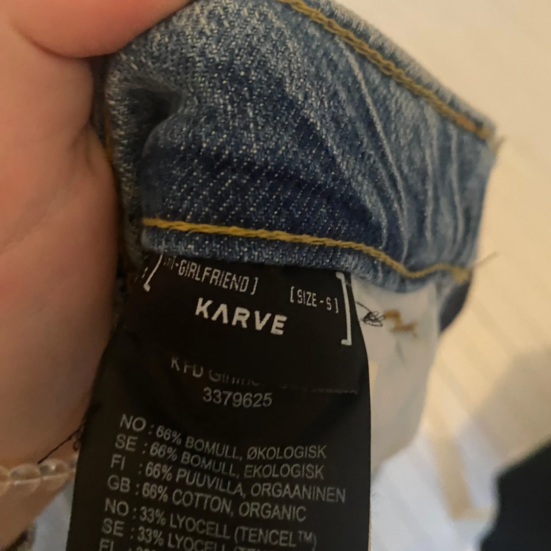 Säljer ett par klassiska blå jeansbyxor från Karve i modellen 'Girlfriend'. Byxorna har normal passform och raka ben. Storlek S
