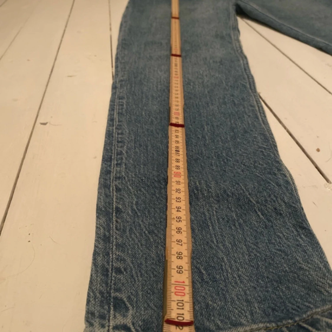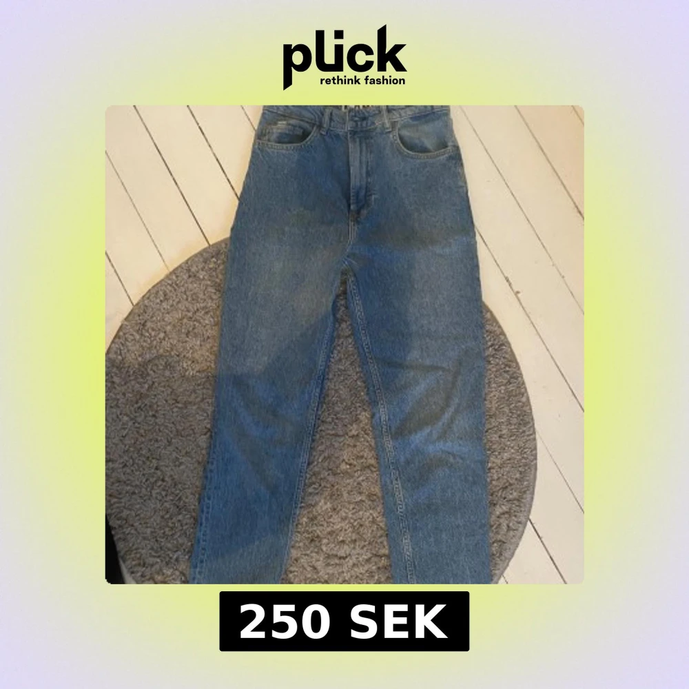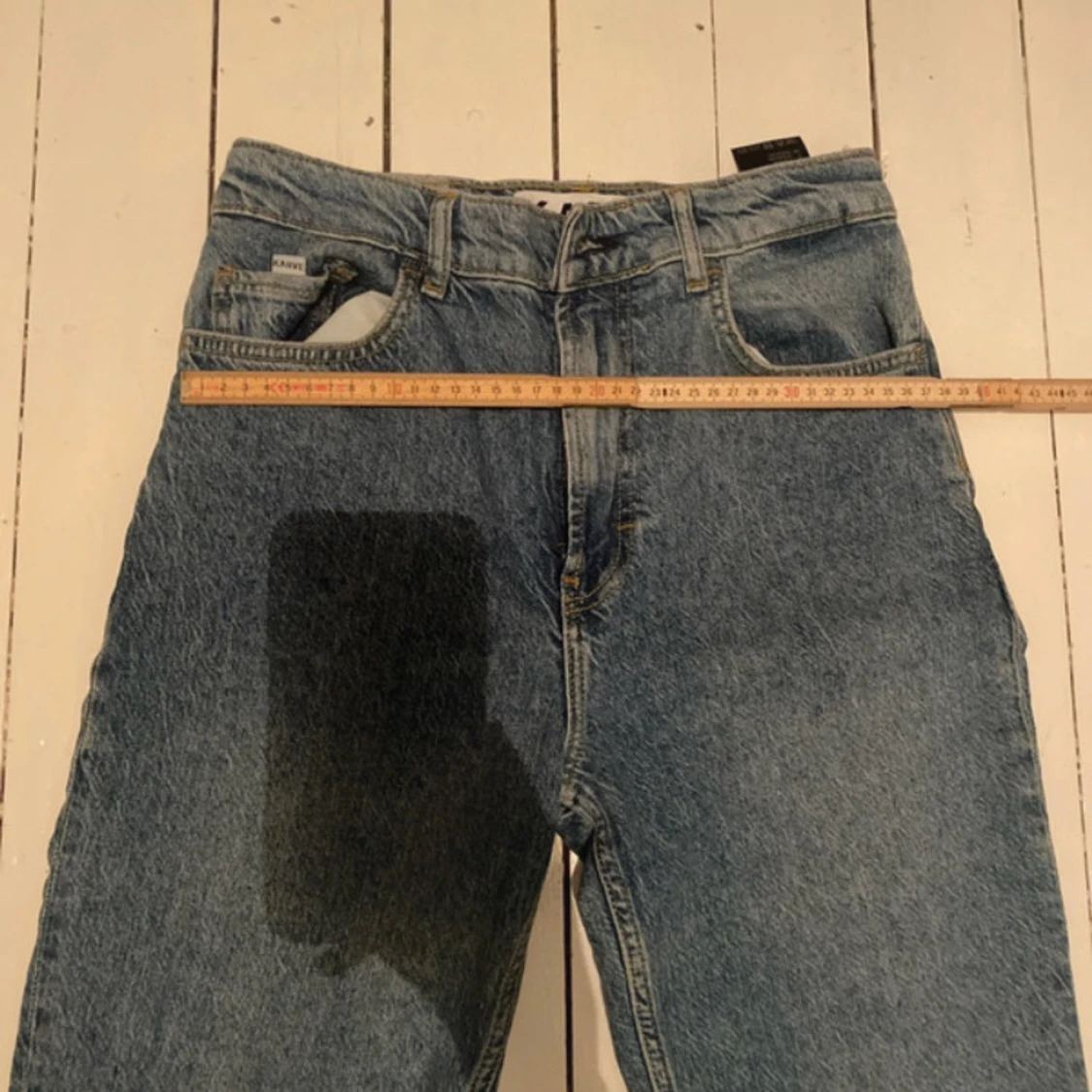 Säljer ett par klassiska blå jeansbyxor från Karve i modellen 'Girlfriend'. Byxorna har normal passform och raka ben. Storlek S