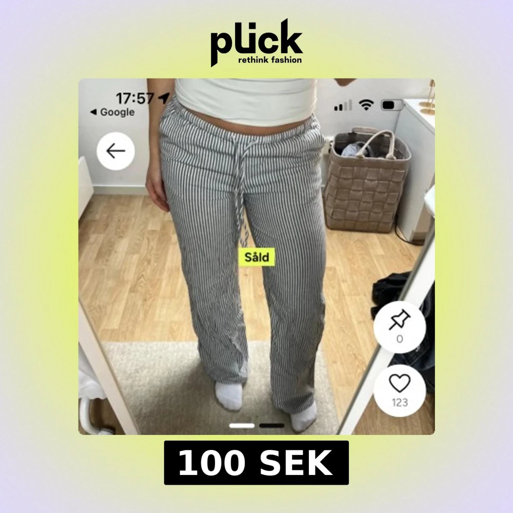 Säljer ett par vita och blå randiga byxor från H&M Divided. Byxorna har en lös passform med raka ben och resår i midjan. Perfekta för en avslappnad stil och tillverkade i mjukt bomullsmaterial. LÅNAD BILD!!💕