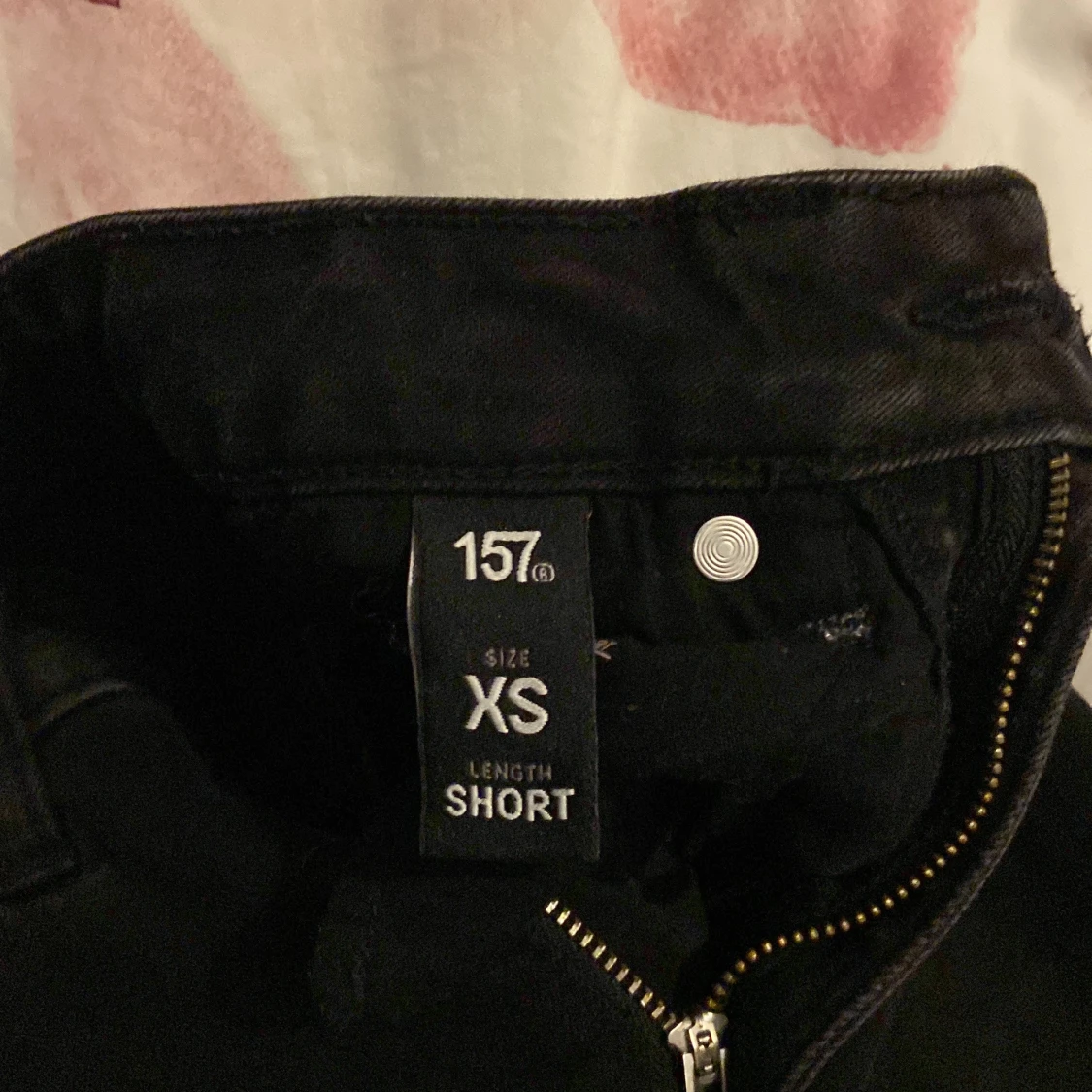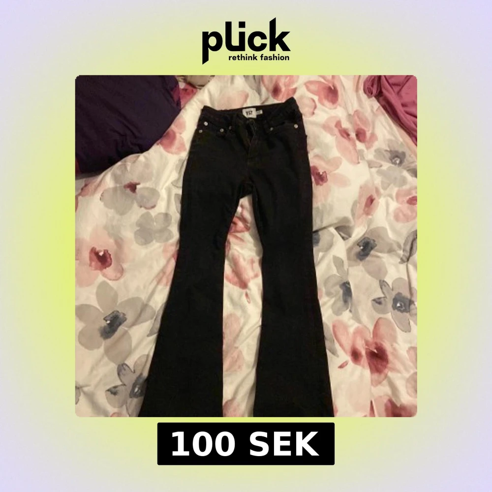 Snygga svarta bootcut jeans från 157 i storlek XS. De har en klassisk design med dragkedja och knapp framtill. Perfekta för en stilren look.