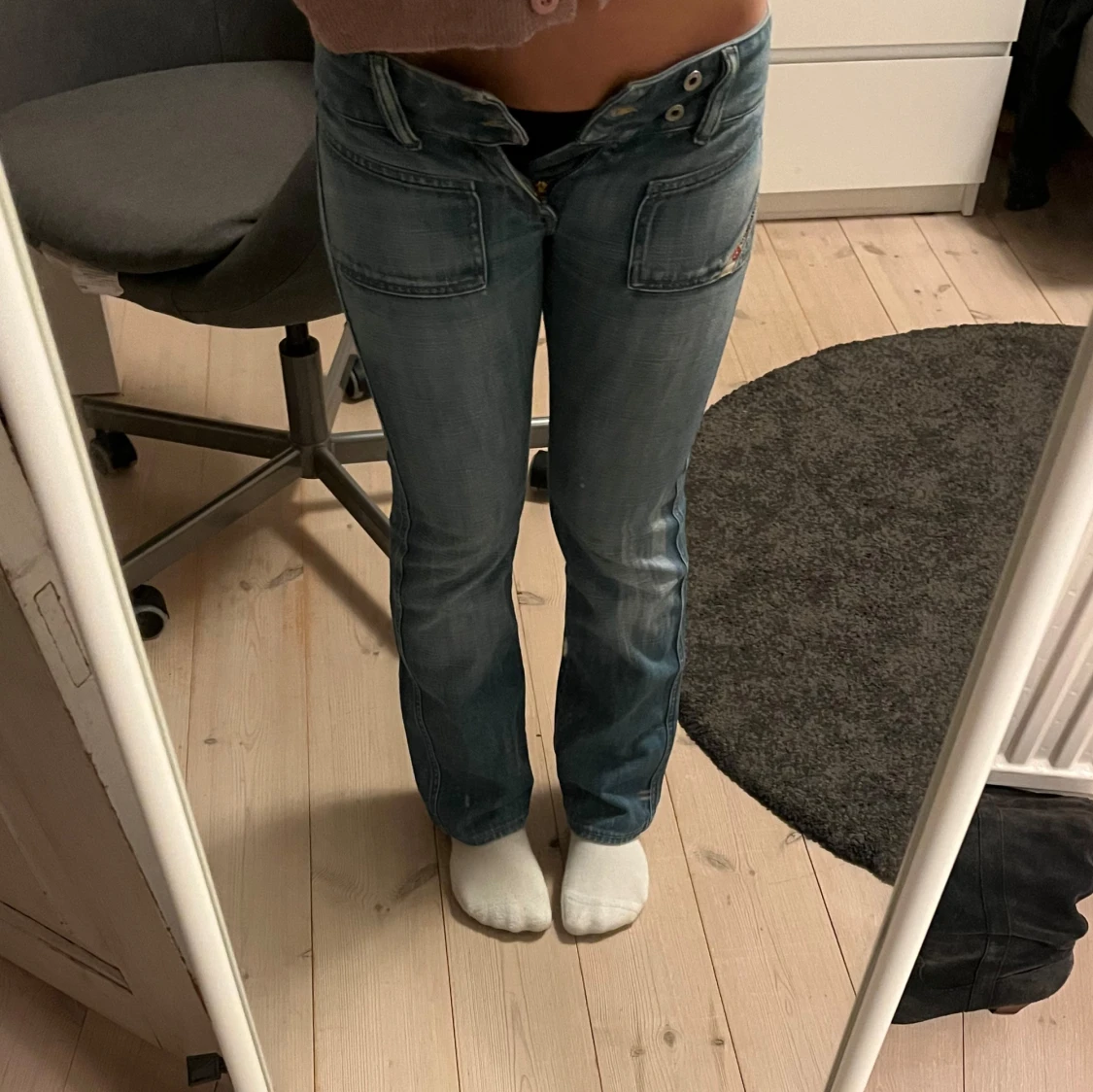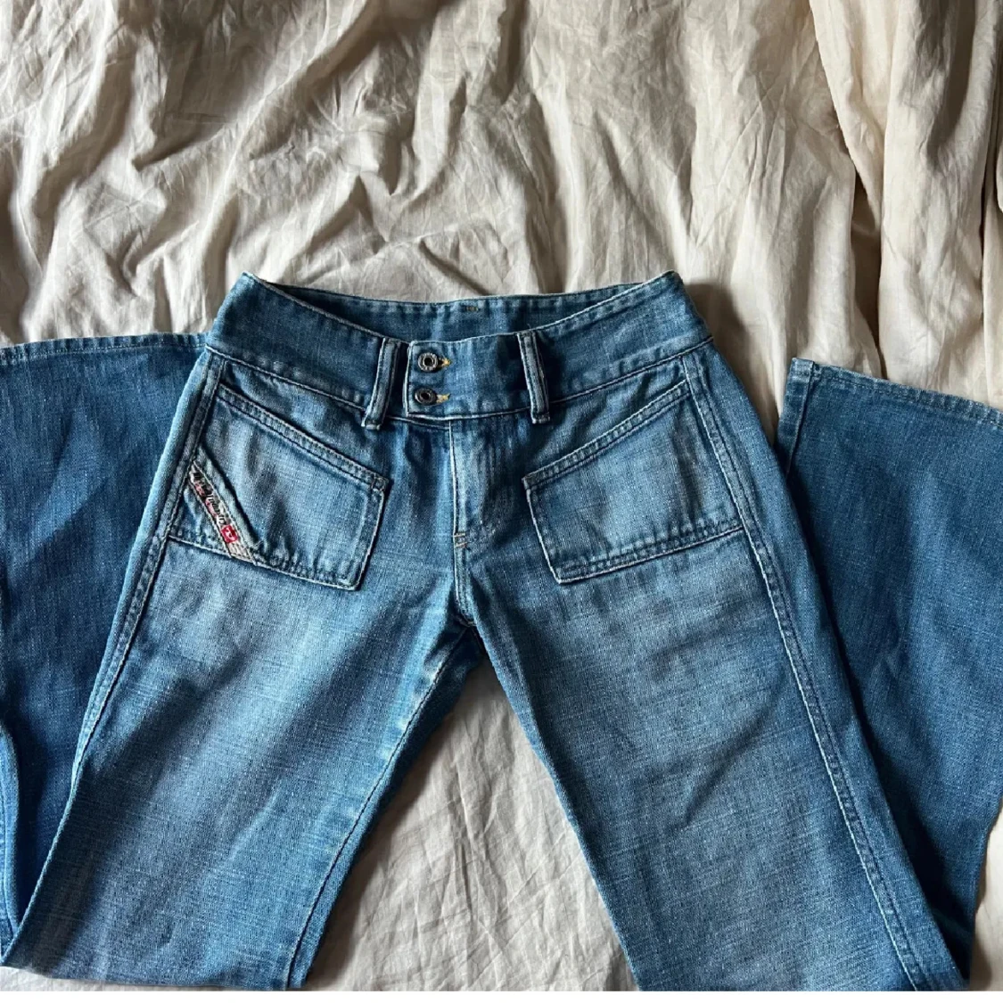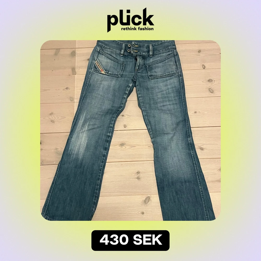 Jättefina lågmidjade jeans från diesel. Jag har själv köpt dom från plick men aldrig använt dom. De är i väldigt fint skick, men var tyvärr försmå på mig💕 bild 2 och 3 är lånade