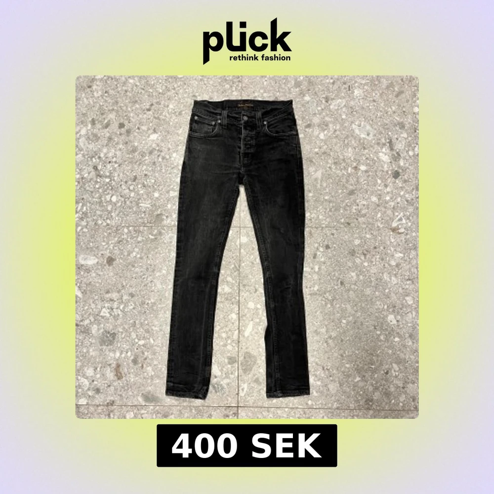 Säljer ett par svarta nudie jeans i mycket bra skick|| modellen är ”Grim Tim” || storleken är W31 L32 men jag upplever de mindre än detta, därför finns mått på bild 2 & 4|| hör av dig vid frågor 🔥