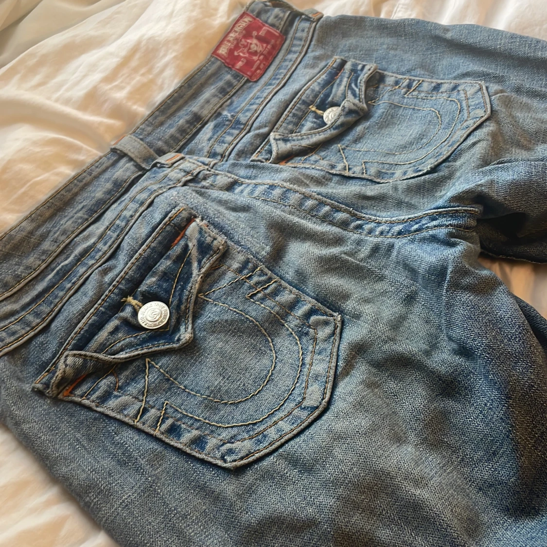 Är inte helt säker på att jag vill sälja dem, men kollar ifall det finns intresse hos någon som skulle få mer användning för de. Lågmidjade, ljusblå true religion jeans.