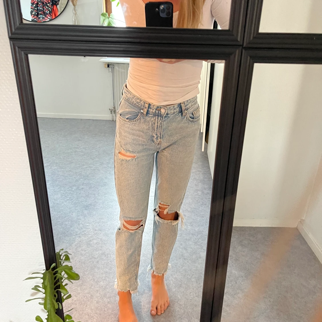 Supersköna snygga mom jeans från Bershka. Sitter så jäkla snyggt över benen och rumpan!!! Säljes då jag ej gillar håliga jeans.