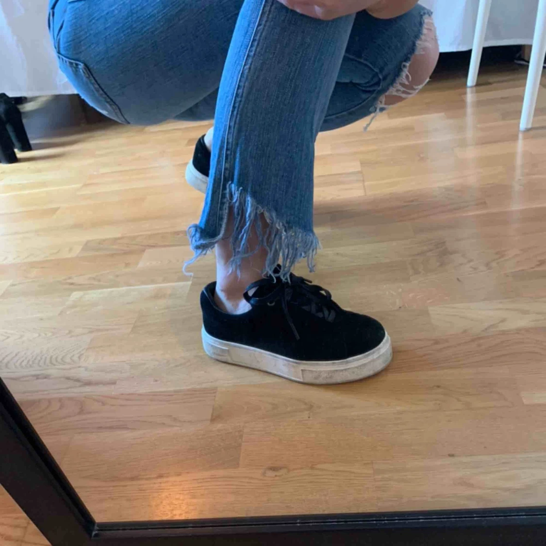 Jeans med slitningar ursprungligen från Zara. Mellanhögmidja och lite stretchiga. Storlek 34. Jeansen är i bra skick.