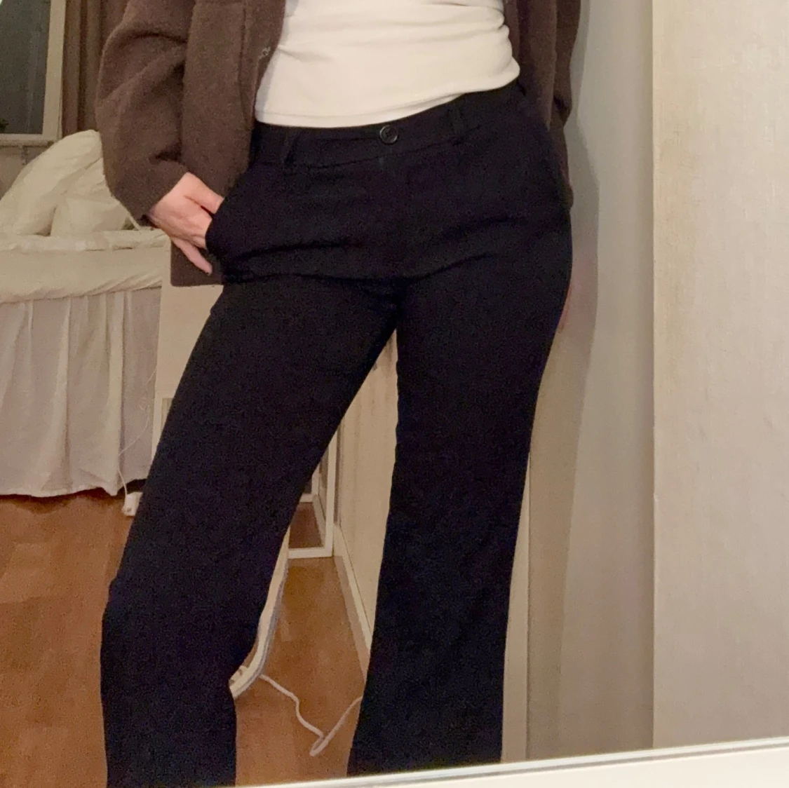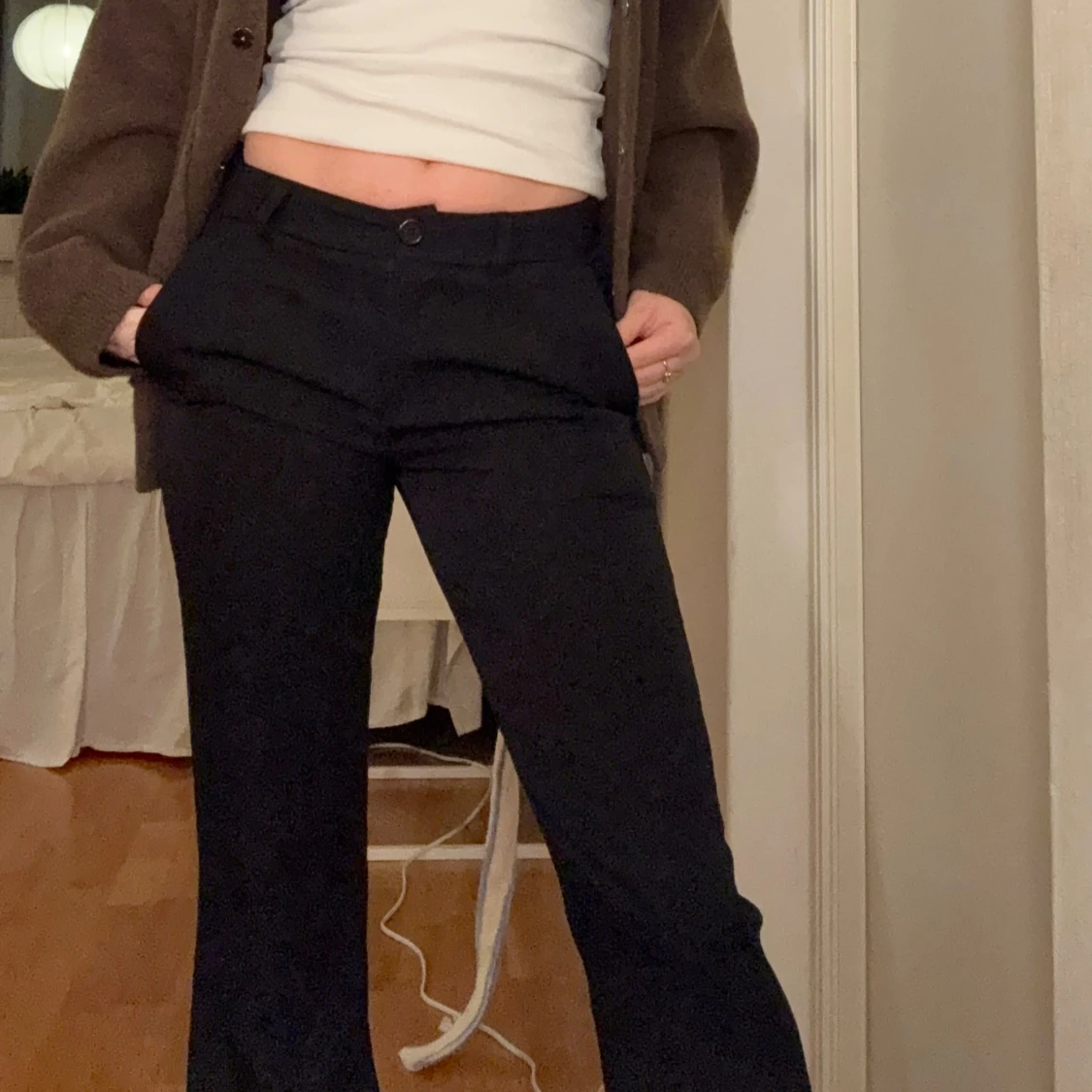 Så fina kostymbyxor som tyvärr blivit försmå. Stl xs/34🌸 de är snyggt lågmidjade och raka vid benen. Använda litegrann men fint skick i övrigt!