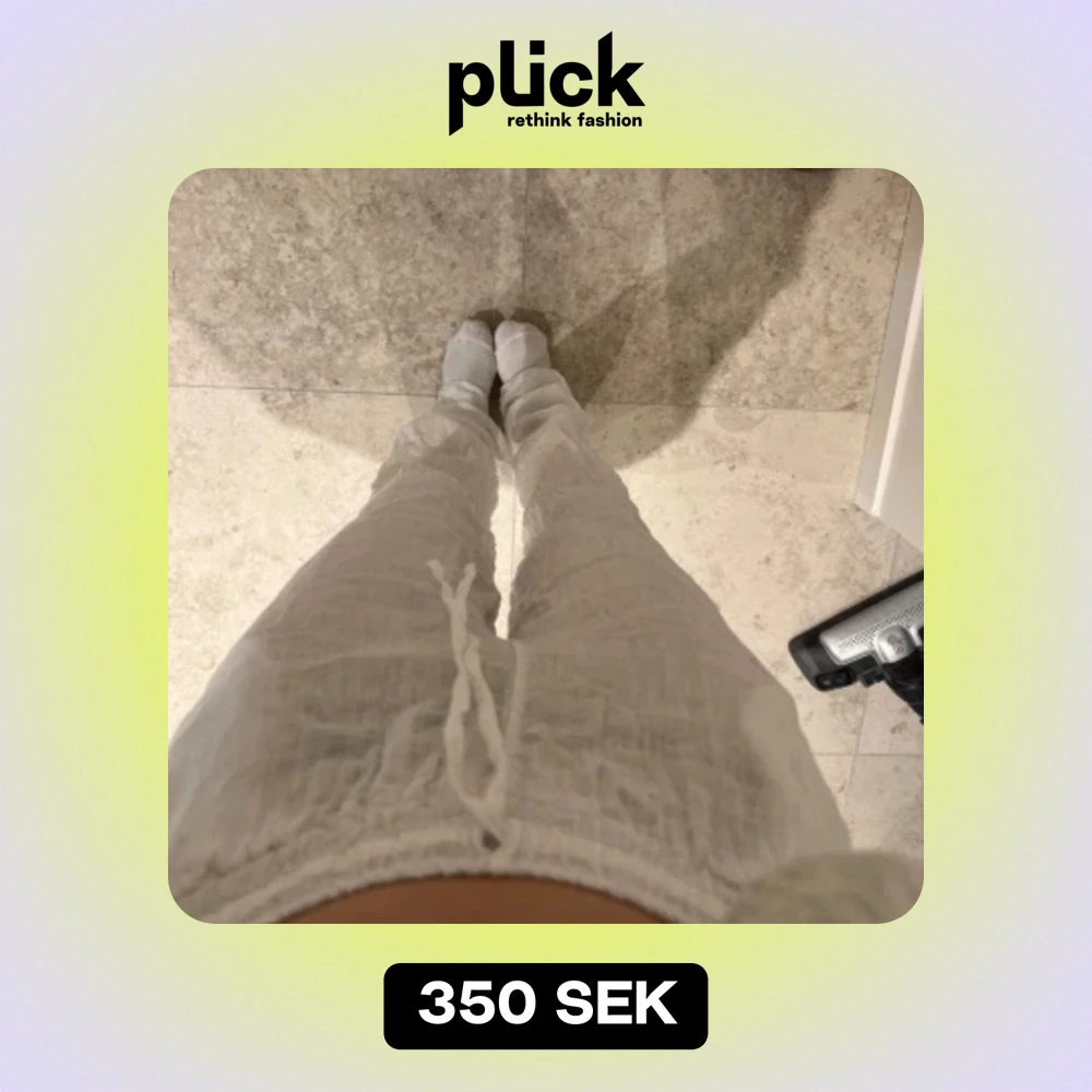 Skitsnygga linnebyxor från design by si till sommaren. Storlek XS/S short längd. Är 156 och de går under fötterna på mig. Super bra skick då de är helt oanvända 🥰🫶🏼