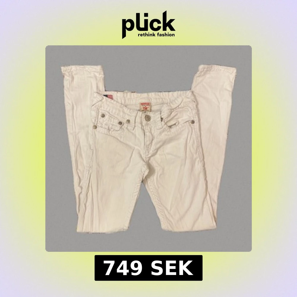 👖 True Religion Jeans – Strl 28 (vit) Superfina vita designerjeans med ikoniska True Religion-detaljer 🤍 Sitter snyggt, passar perfekt till allt från hoodie till linne ✨ Äkta kvalitet – Made in USA 🇺🇸 📏 Midja ca 30 cm, normal längd 💰 Pris: 749 kr (eller bud!) 📦 Skickas snabbt från Sverige 🇸🇪