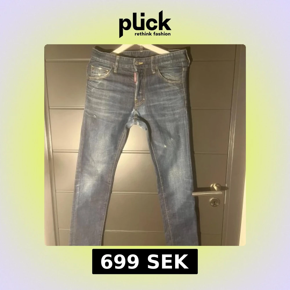 Säljer ett par blå jeans från desquerd med snyggt slitna detaljer och klassisk femficksdesign. Jeansen har smal passform, normal midja och är tillverkade i bomull med lite stretch. Perfekta för dig som gillar en clean men ändå avslappnad look. Jag sänker priset lite då det finns ett litet hål i byxorna, kolla bild 4. Annars riktiga snygga byxor som inte är så jätte använda. Byxorna passar folk från 1,65 till 1,70.