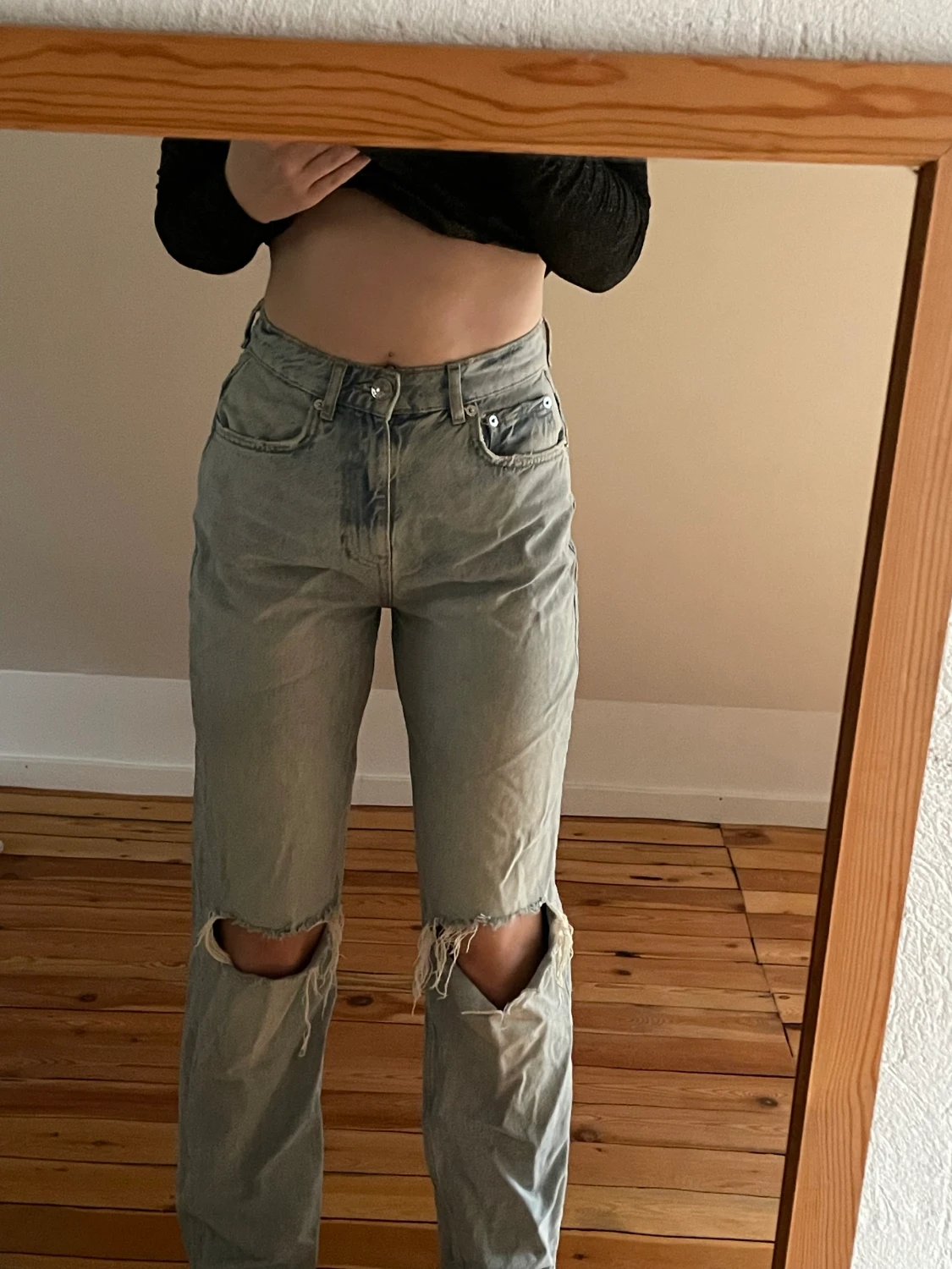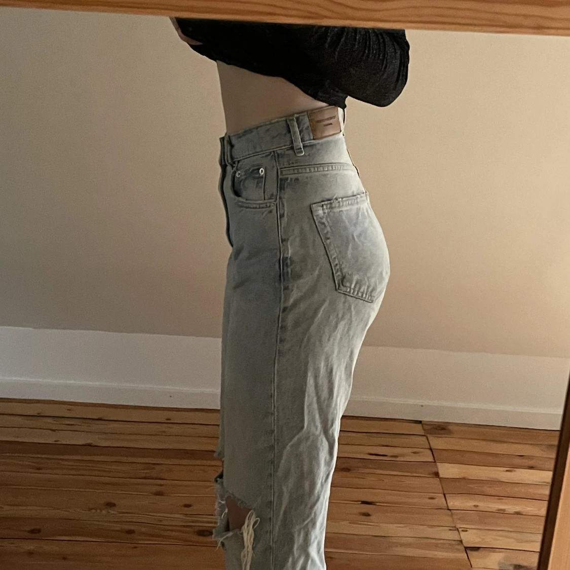 Ljusblåa jeans från Gina tricot med hål på knäna. Bra skicka! Orginalpriset var 700. Pris kan diskuteras! Köparen står för frakten!
