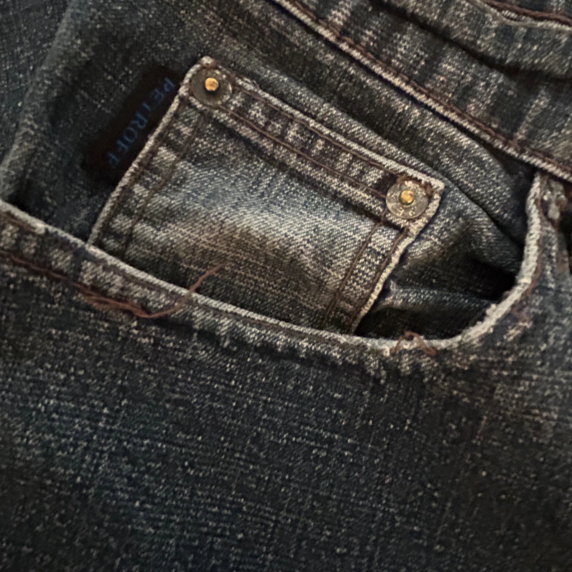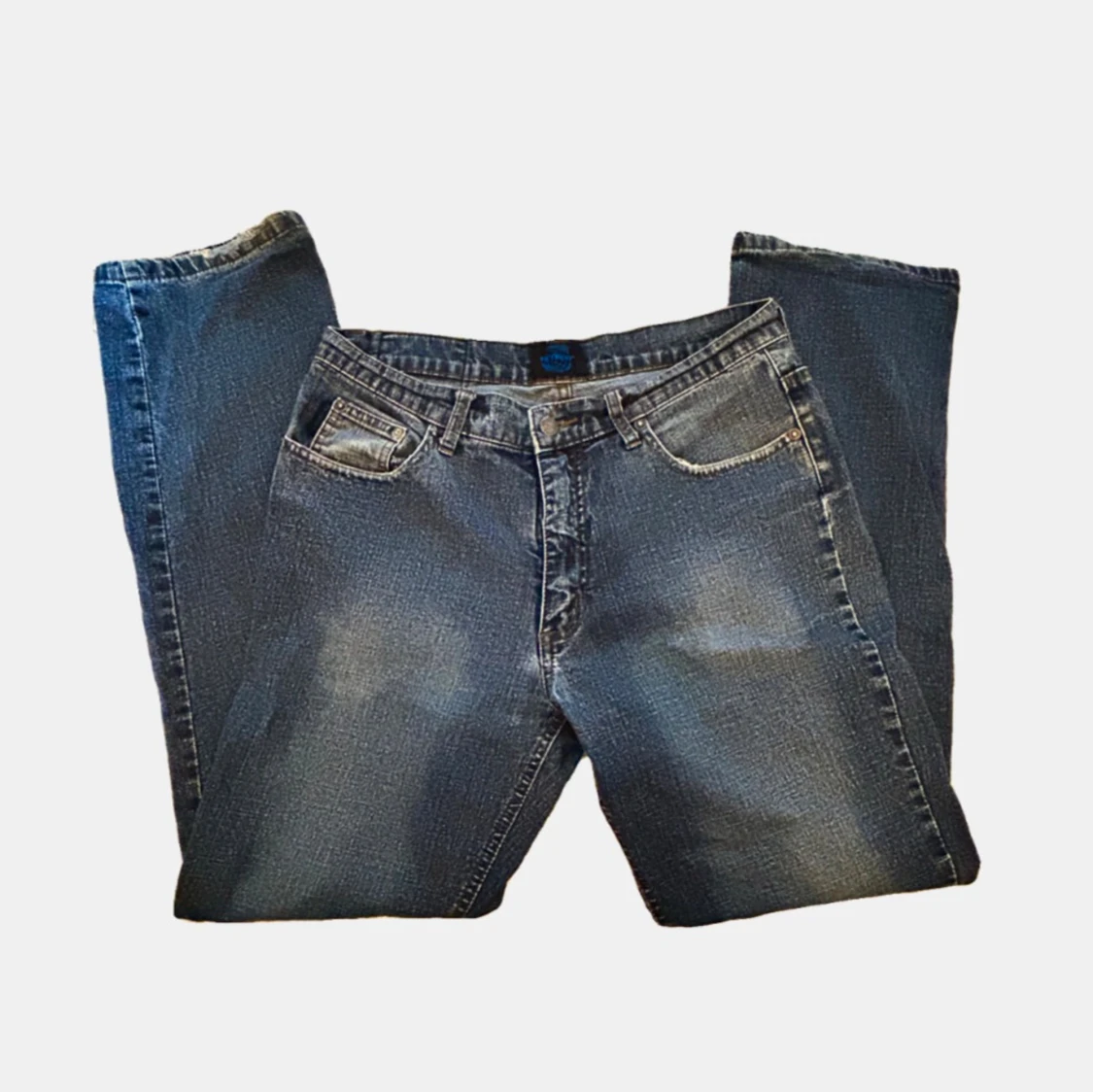 MörkblĂ„ jeans som inte kommer till anvĂ€ndning lĂ€ngre! Liten skada lĂ€ngst ner vid benet, men inget som synsđskulle sĂ€ga m-l storlek, hör av er för midjemĂ„tt osv!