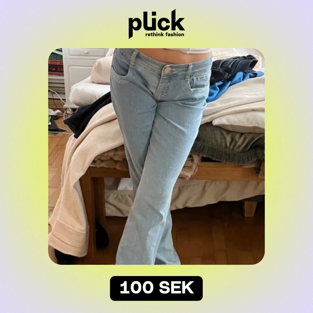 Låga ljus vintage jeans med diamantdetaljer på bakfickorna😘 Bara att fråga om du vill ha mer bilder!