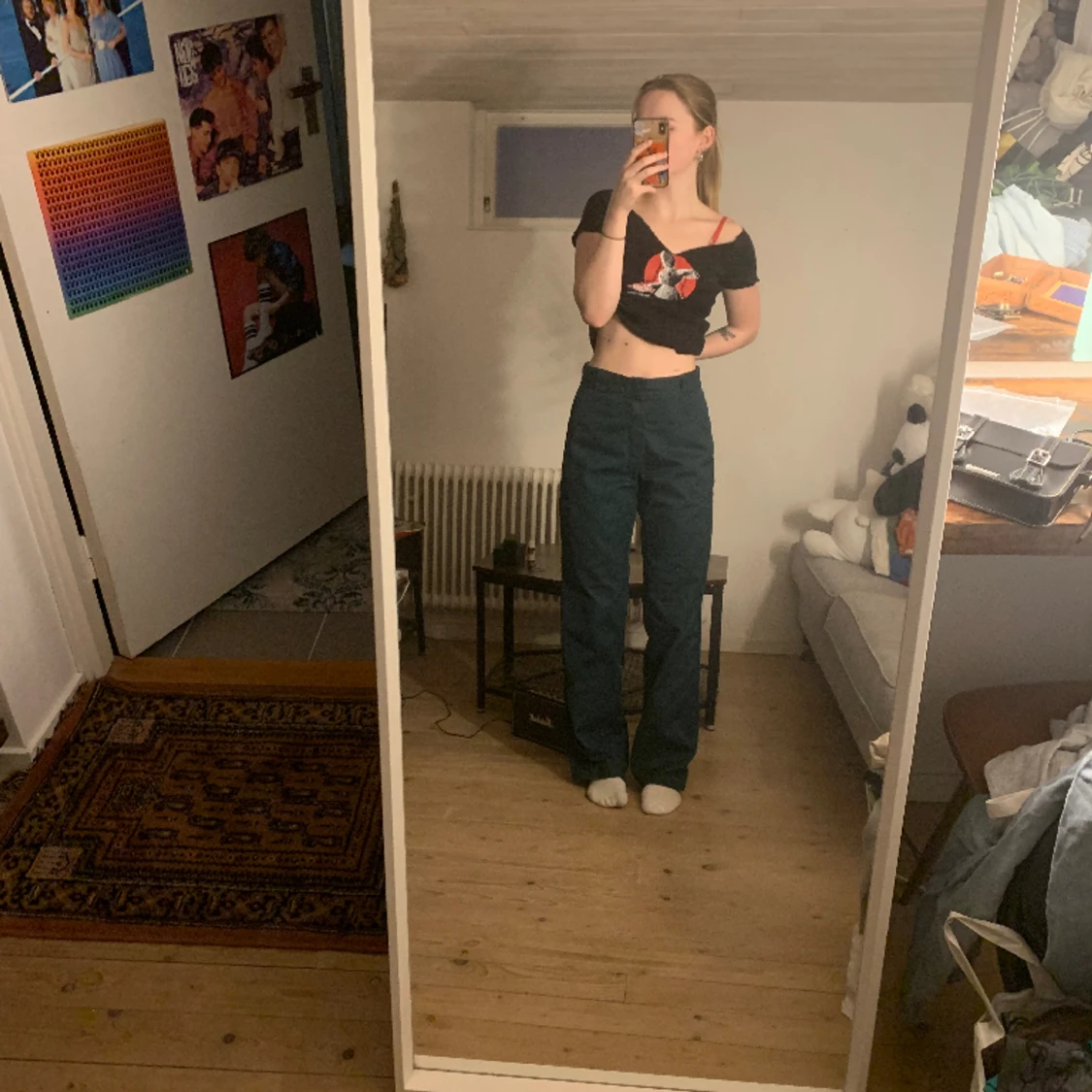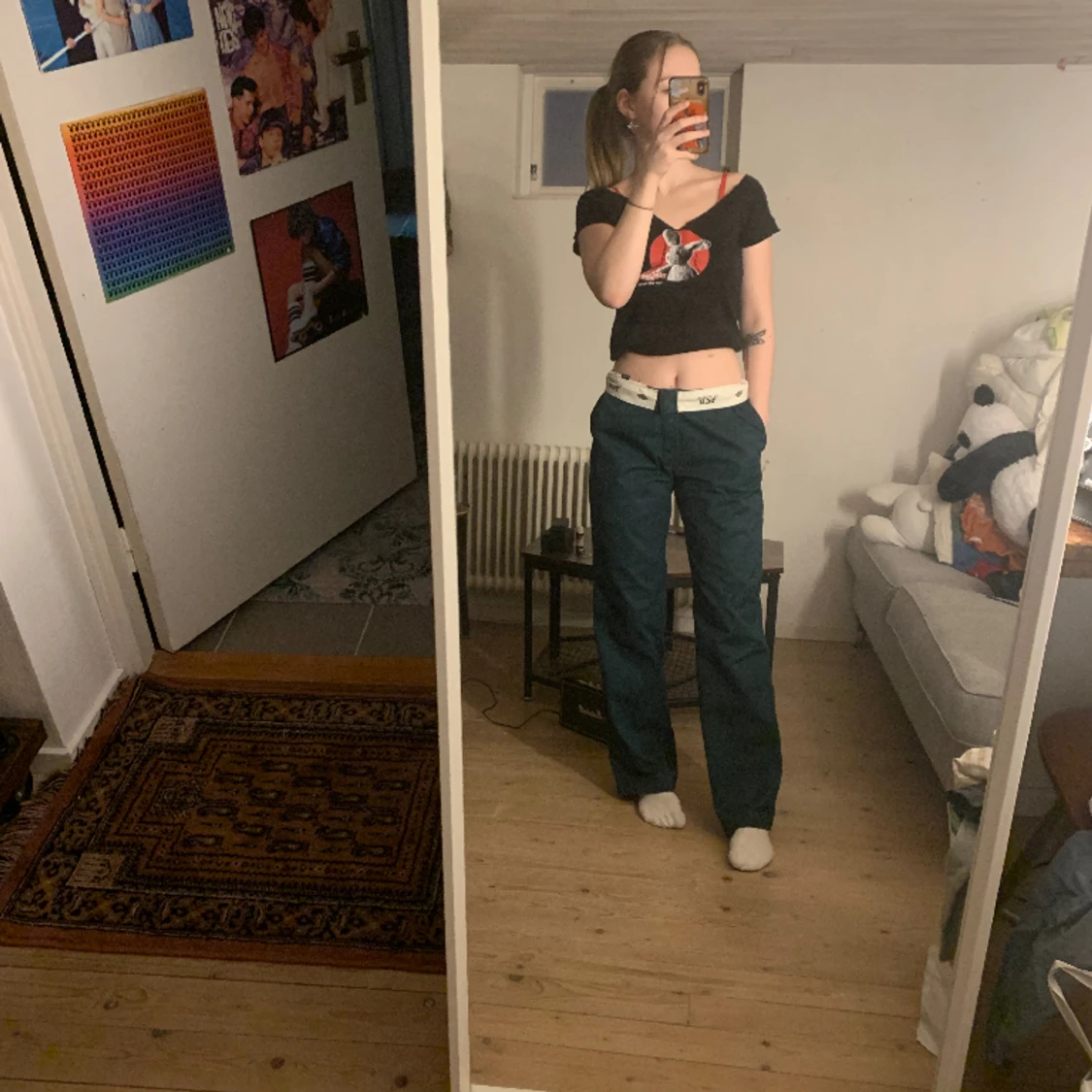 Dickies kostymbyxor i storlek 30x32. Färgen är mörkgrön men svårt att se på bild. Nypris runt 700kr, säljer för 350kr