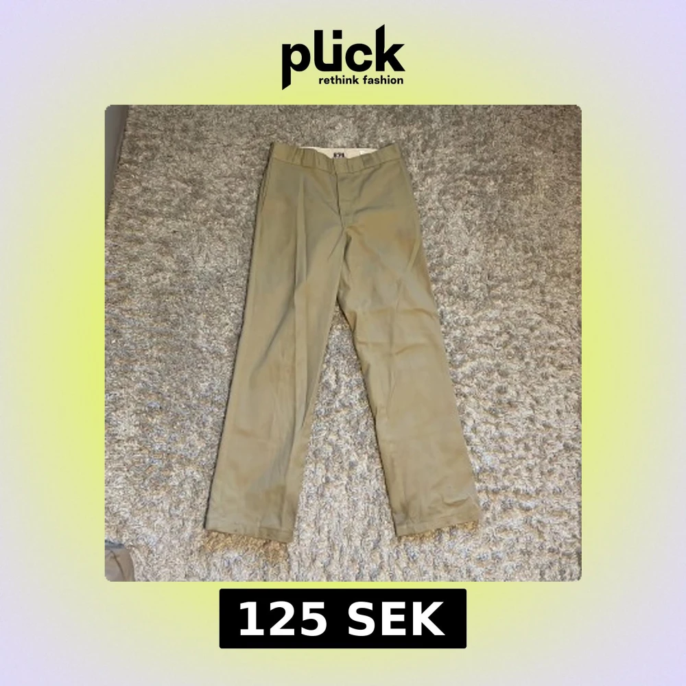 Snygga beige byxor från Dickies med rak passform. Perfekta för en avslappnad stil. Byxorna har en klassisk design med fickor och en diskret logga baktill.