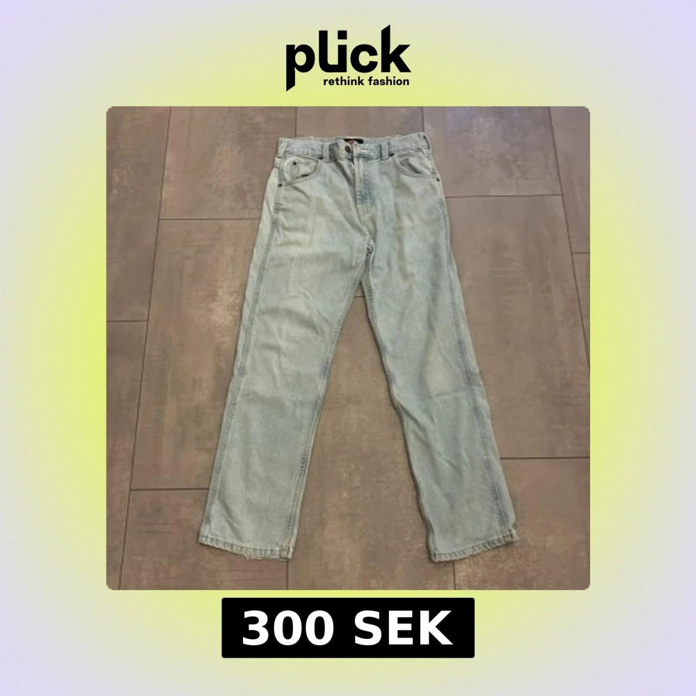 Ljusblå raka jeans från Dickies med klassisk femficksdesign och Dickies-logga på bakfickan. Jeansen har normal passform och är tillverkade i slitstarkt denim. Snygga fransade benslut för en avslappnad vibe. Storlek w28
