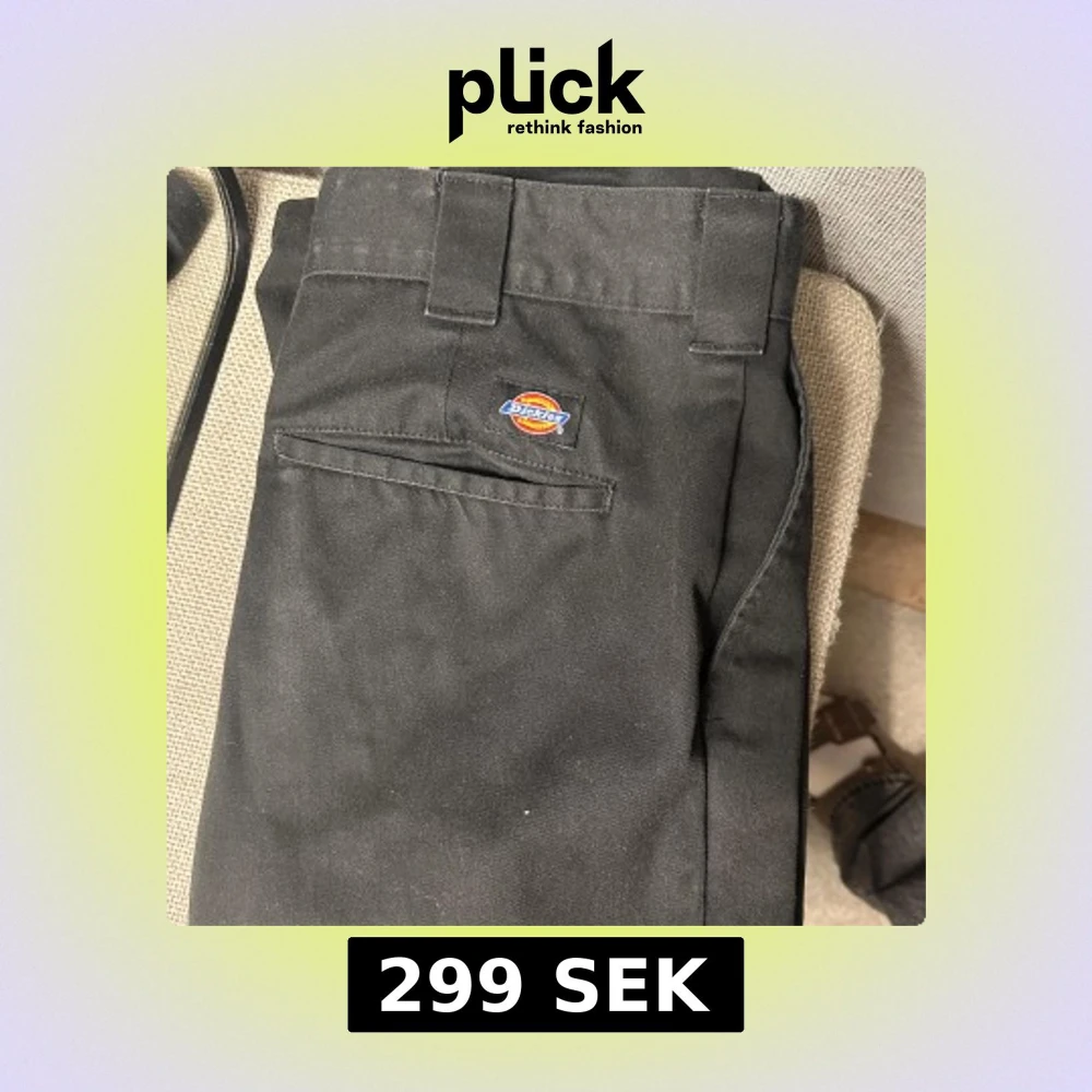 Säljer ett par svarta slim fit byxor från Dickies. Byxorna har en klassisk design med dragkedja och hällor för bälte. Perfekta för en stilren look.